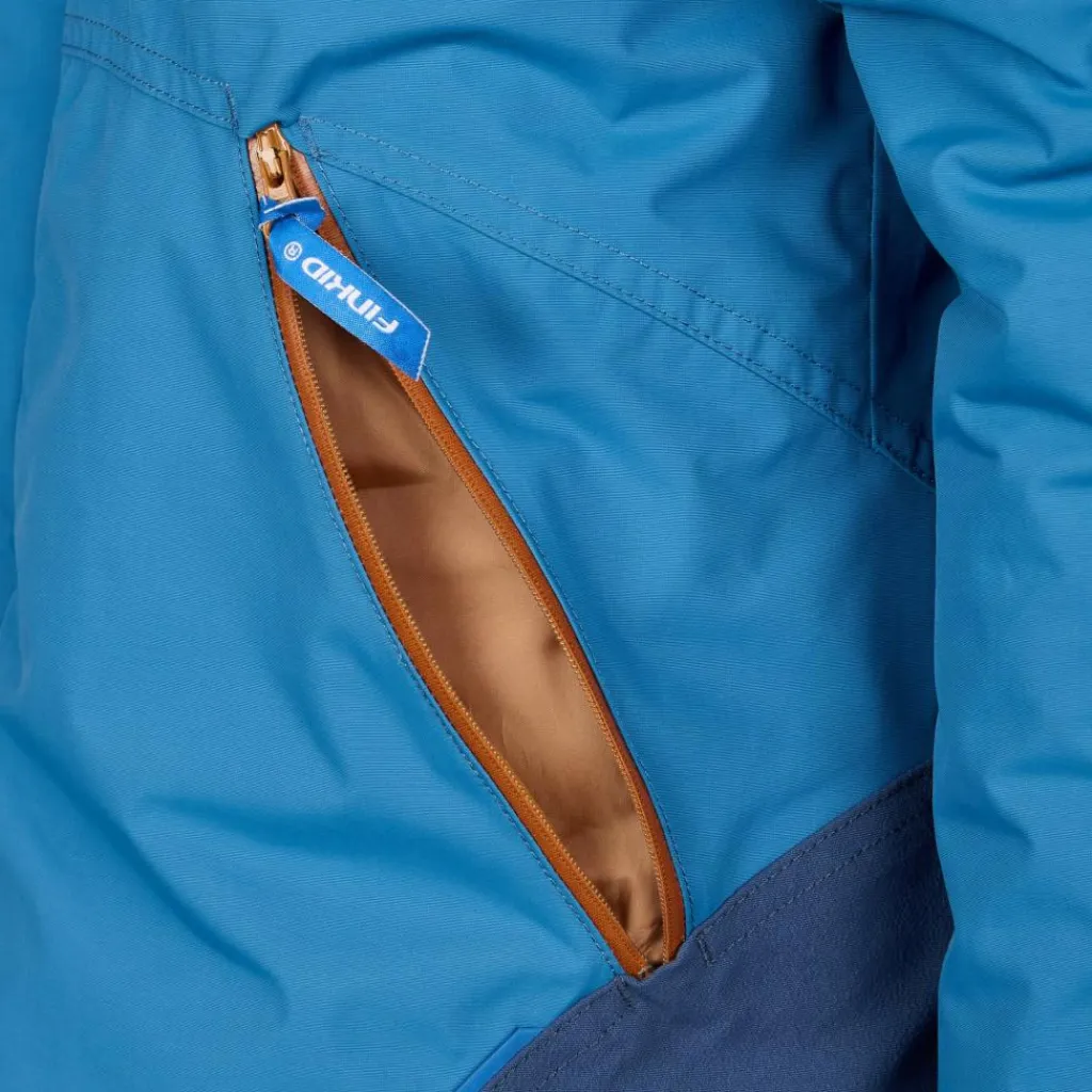 Dank ihrer PU-Beschichtung ist die Jacke zuverlässig wind- und wasserdicht. Für die nötige Wärme bei kalten Temperaturen sorgt die unempfindliche, atmungsaktive Kunstfaserfüllung. Diese hält deine Kinds angenehm warm, ohne dass sie bei wilden Schneeballschlachten überhitzen. Damit Nässe und Kälte auch auf Umwegen nicht in die Jacke gelangen kann, ist sie mit einem praktischen Schneefang sowie mit innen liegenden, teilelastischen Stulpen in den Ärmelbündchen ausgestattet. Handschuhe mir Schlaufen können mithilfe von Druckknöpfen in den Ärmelbündchen befestigt werden.
