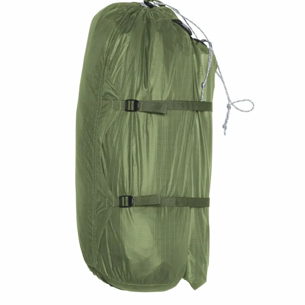 Das Außenmaterial besteht aus hochleistungsfähigem TripleRip Polyamid, das aus zwei unterschiedlichen Stärken hergestellt wurde. Das dunklere, bodennahe Material ist aus 40 Denier starkem Polyamid, das weniger beanspruchte Obermaterial aus 20 Denier Polyamid. So wird hohe Robustheit bei geringem Gewicht erzielt.