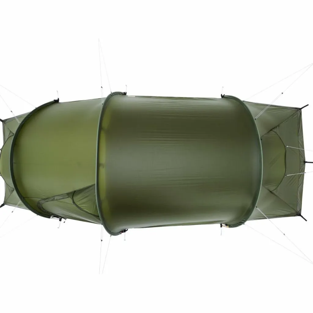 Gewichtsoptimiertes Tunnelzelt für 2-3 Personen und den Ganzjahreseinsatz. Geräumige Apsis für Rucksäcke, Schuhe und andere Ausrüstung. Durch das geringe Gewicht ist es auch zum Wandern gut geeignet.