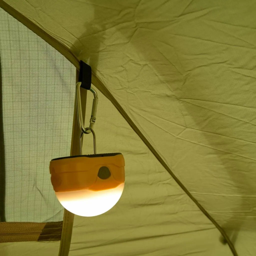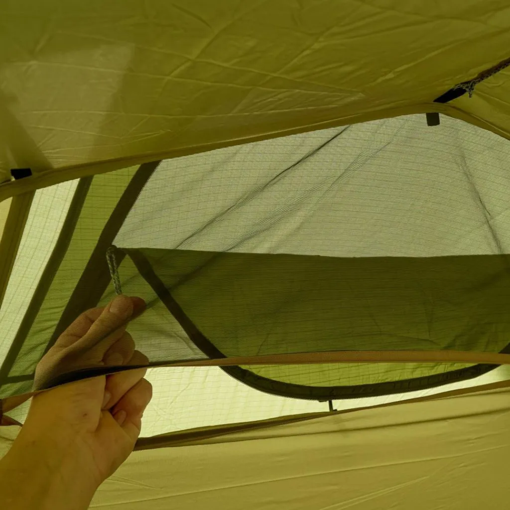 Die großen Lüfter sind hoch angebracht und besitzen ein feinmaschiges Moskitonetz, das selbst kleinste Insekten fernhält. Besonders in warmen Nächten wirst du dich aber über die zusätzliche Belüftungsfunktion der Eingangstür freuen. Sie kann in halb geöffneter Position fixiert werden und sorgt anschließend für maximale Belüftung im Zelt. Eine Auto-Stopp-Funktion verhindert dabei, dass sich der Reißverschluss weiter öffnen kann.
