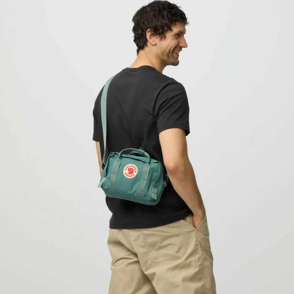 Hergestellt ist die Kanken Crossbody aus Fjällrävens Vinylon F. Wird dieses Material feucht, quillt es wie eine Naturfaser auf. Dadurch wird das Gewebe wasserabweisend, ganz ohne zusätzliche Beschichtung.