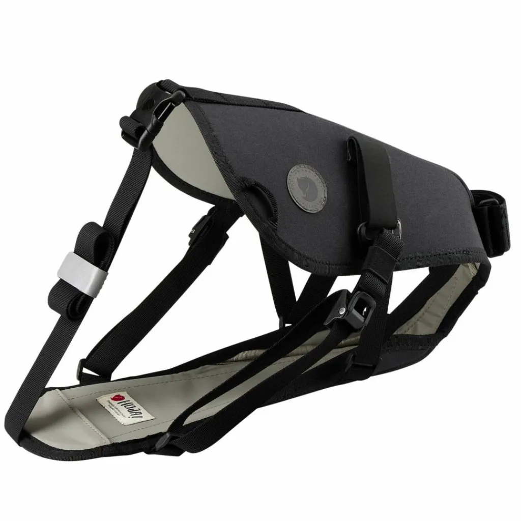 Potenziell viel Ausrüstung am Sattel braucht auch viel Stabilität. Die bringt das Hoja Seatbag Harness mit, denn es wird mit zwei kräftigen Riemen am Sattelgestell und mit einem Klettriegel an der Sattelstütze fixiert. Auf diese Weise ist der obere Rahmen fest mit deinem Fahrrad verbunden, während der untere Rahmen beweglich bleibt. Beide Rahmenteile zusammen haben deine Ausrüstung über die zweifach umgelenkten Kompressionsriemen an beiden Seiten fest im Griff. Die Blitzverschluss-Schnallen erleichtern das Anbringen und Abnehmen deiner Sachen. Die Rahmenteile sind mit Panels abgedeckt, die mit strapazierfähigem Vinylon F bezogen sind. Diese Panels schützen sowohl deinen Packbeutel als auch deinen Rücken, da sie vom Hinterrad hochgeschleudertes Wasser und Schmutz abhalten.