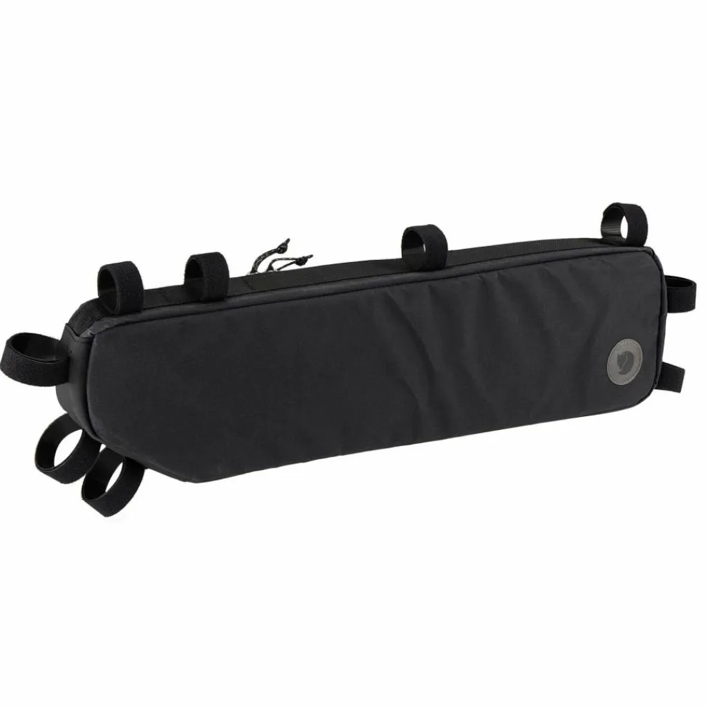 Die Hoja Frame Bag L hat einen langen RV, der hinten auch „ums Eck“ geht. Dadurch kannst du die Rahmentasche schön weit öffnen und kommst an den Inhalt sehr gut heran. Durch die Lage im Zentrum deines Fahrrades lassen sich hier gut schwere Ausrüstungsgegenstände unterbringen. Dank der sieben Klettlaschen kannst du die Hoja Frame Bag L sicher im Fahrradrahmen fixieren.