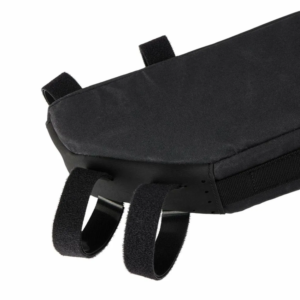 Die Hoja Frame Bag S hat einen langen RV, der hinten auch „ums Eck“ geht. Dadurch kannst du die Rahmentasche schön weit öffnen und kommst an den Inhalt sehr gut heran. Durch die Lage im Zentrum deines Fahrrades lassen sich hier gut schwere Ausrüstungsgegenstände unterbringen. Dank der sieben Klettlaschen kannst du die Hoja Frame Bag S sicher im Fahrradrahmen fixieren.