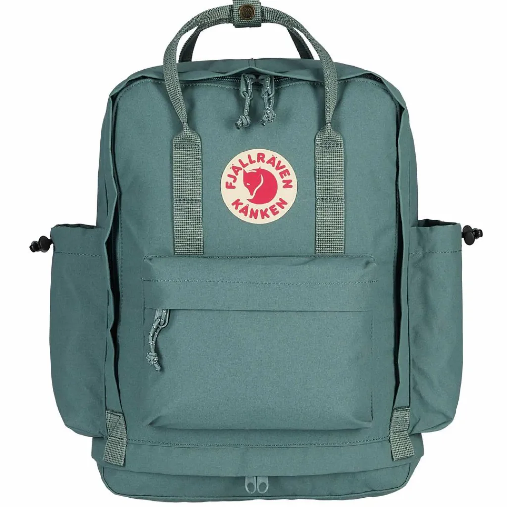 Auf der Front des Kanken Outlong sind dezente Materialschlaufen angebracht, an denen ganz einfach ein Blinklicht oder kleinere Ausrüstung mithilfe eines Materialkarabiners angebracht werden kann. Auch das Tragesystem hat ein Upgrade bekommen, denn dank des gepolsterten Rückens und der breiteren Schultergurte trägt dein Kanken Outlong sich auch mit Einkäufen oder Büchern noch bequem nach Hause.