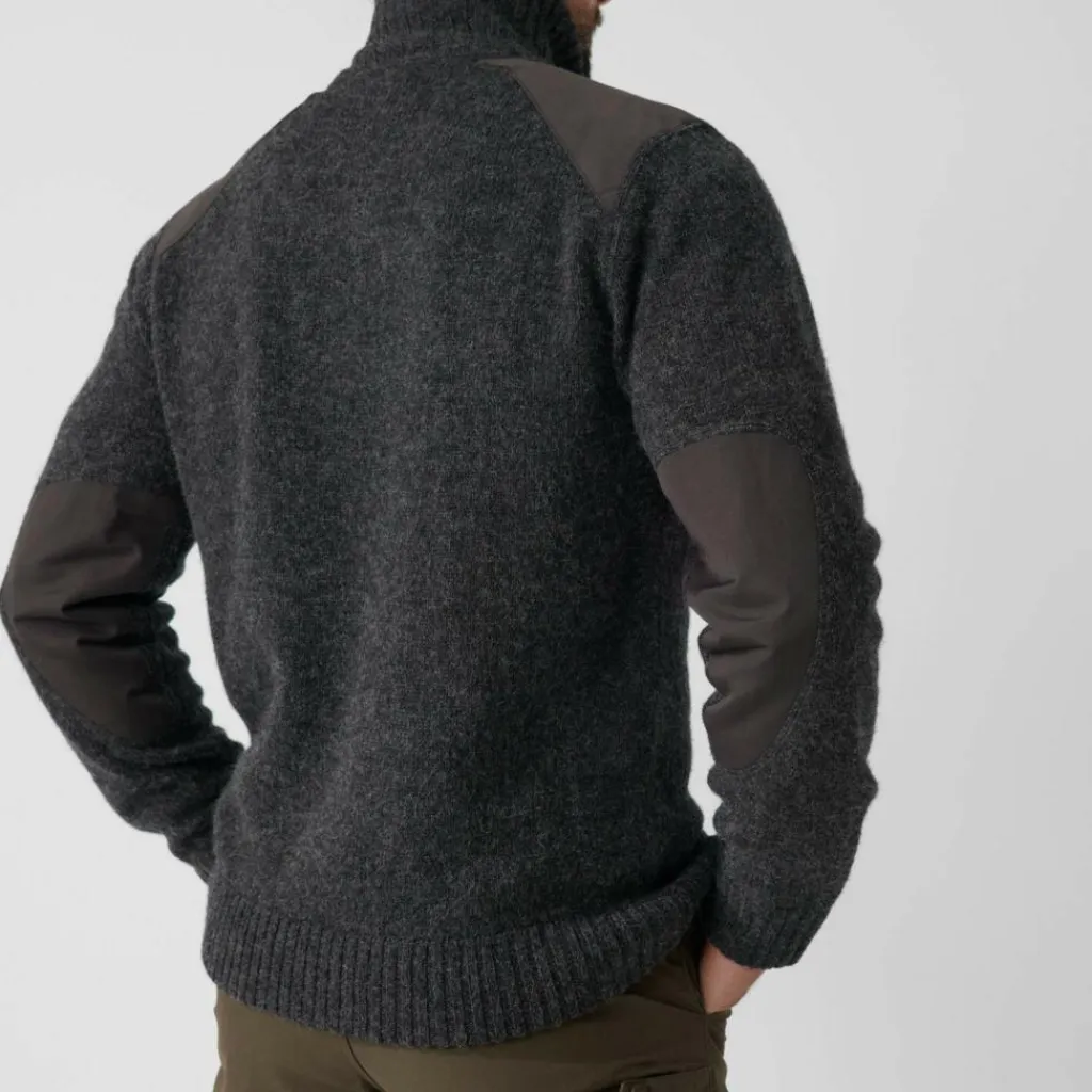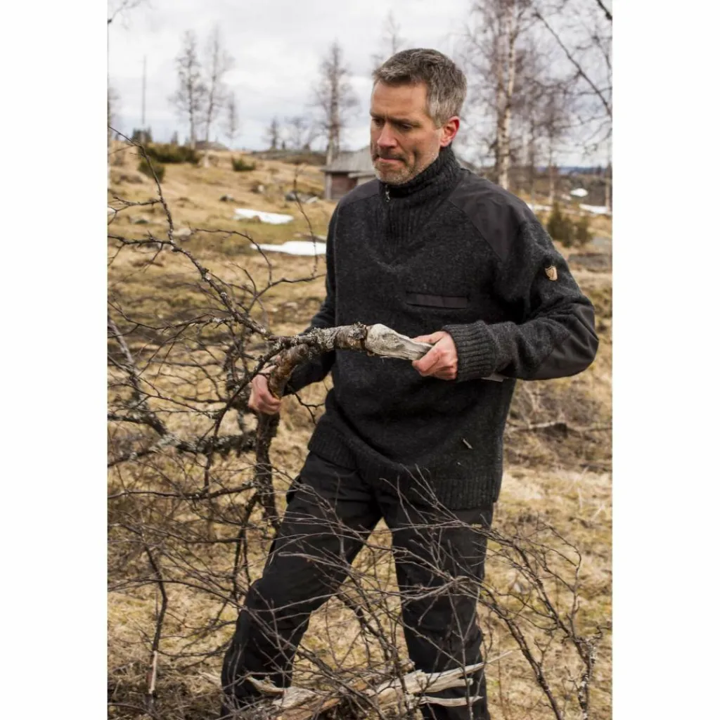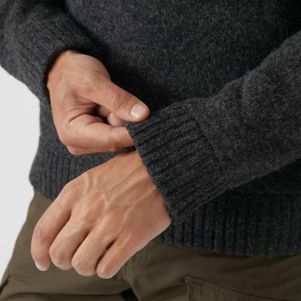 Die Schultern und Ellenbogen zeigen nach jahrelangen Gebrauch immer zuerst Verschleißerscheinungen. Deshalb hat Fjällräven den Koster Sweater hier zusätzlich mit dem abriebfestem G-1000 Original verstärkt. Ganz dezent im entsprechenden Farbton. Die verwendete Lammwolle wirkt auf natürliche Weise wärmeregulierend und wärmt auch im feuchten Zustand noch zuverlässig. Ein hochwertiger Pullover zum Wandern, Jagen und für den Alltag.