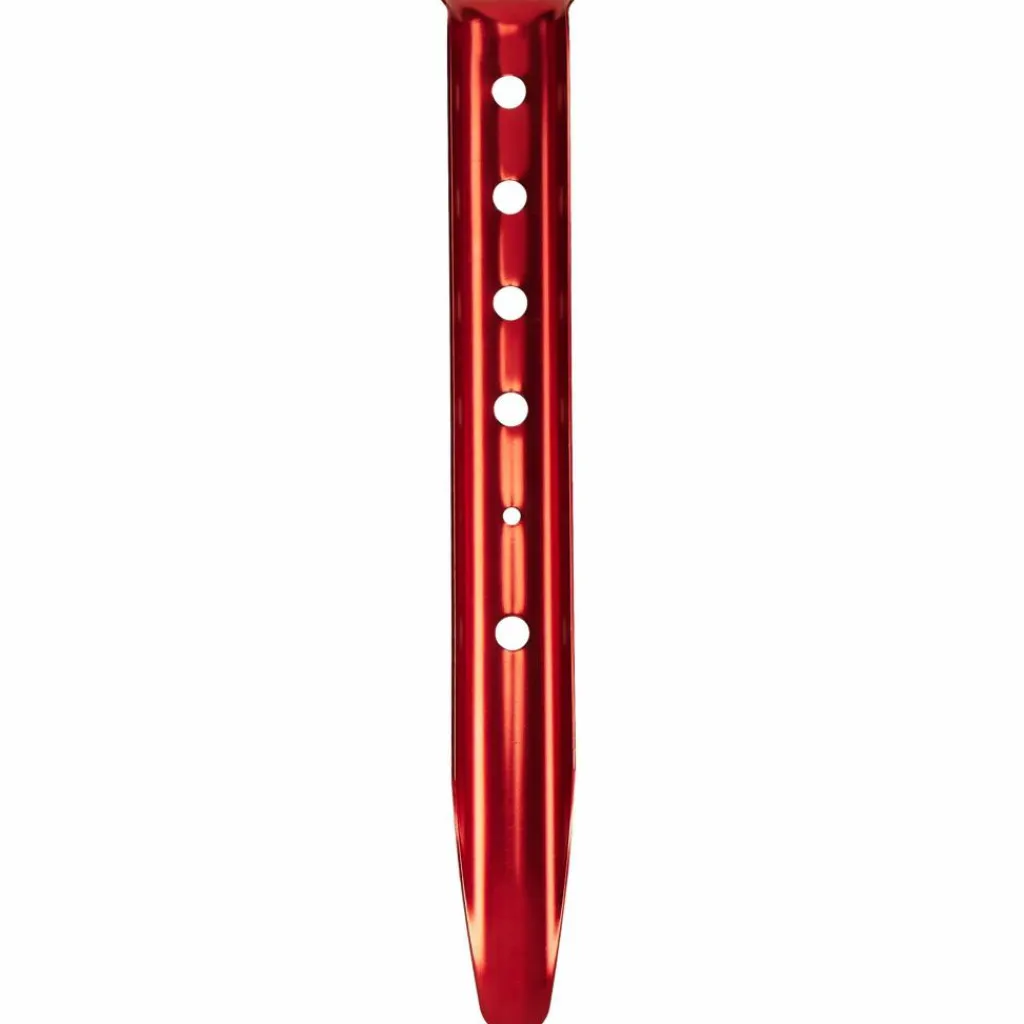 Breiter, langer Zelthering, der gute Stabilität in Schnee und Sand bietet, wo normale Heringe nur schwer Halt finden. Aus Aluminium hergestellt, gut sichtbare rote Farbe.