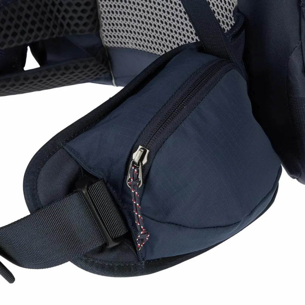 Ob unterwegs oder am Abend, die zusätzliche Frontöffnung des Hauptfachs ist äußerst praktisch. Daneben bietet der Tourenrucksack verschiedene Möglichkeiten, wichtige Ausrüstung so zu verstauen, dass du sie schnell zur Hand hast. Snacks und Sonnencreme passen in die Taschen auf dem Hüftgurt, Wasser kommt in Flaschen in den seitlichen Steckfächern oder im Trinksystem im Innern unter. Die elastische Kordel auf dem Deckel hält deine Regenjacke fest, falls das Wetter mal schnell umschlagen sollte.