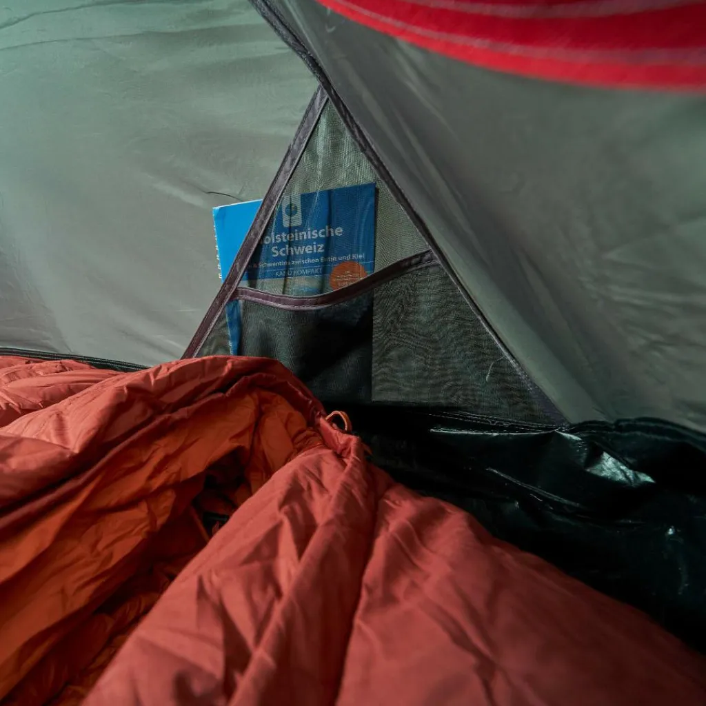 Das Innenzelt ist großzügig geschnitten. Mit einer Höhe von 115 cm kannst du bequem sitzen und anziehen. In der Apsis ist Platz, um dein Gepäck zu lagern. Ist man alleine unterwegs, ist im Innenraum auch genügend Platz für große Rucksäcke.