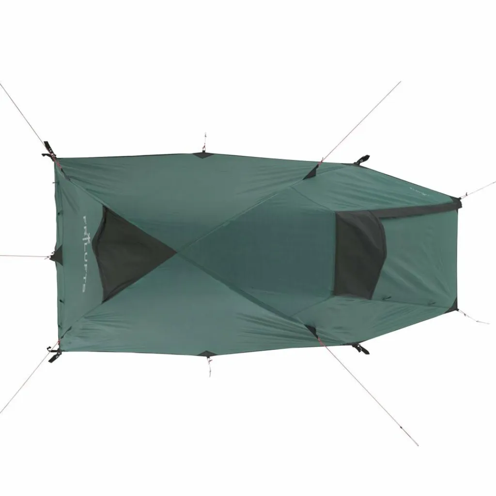 Mit einem Gewicht von nicht einmal 3 kg der ideale Begleiter auf allen Rucksacktouren. Der zusätzliche Firstbogen sorgt für Kopffreiheit im Einstiegsbereich und in der Apsis. Das Außenzelt lässt sich auf der Rückseite über die gesamte Breite aufrollen. Zusammen mit den beiden Lüftern und den großflächigen Moskito-Gaze-Einsätzen am Innenzelt sorgt es so auch bei höheren Temperaturen für hohe Luftzufuhr.
