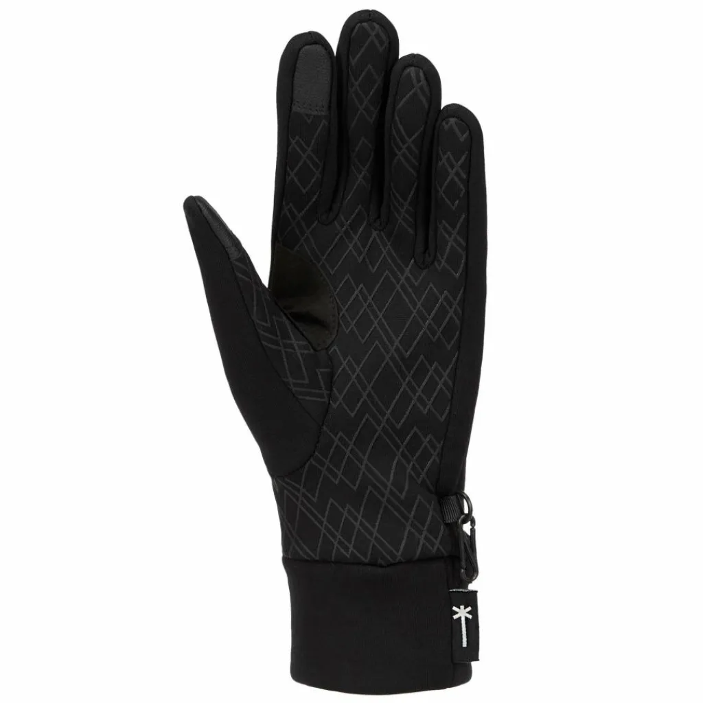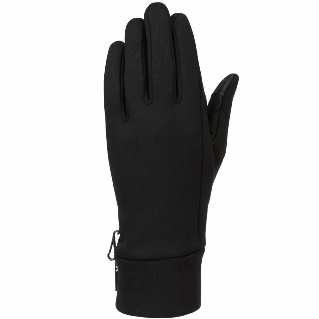 Ein aufgedrucktes Silikon-Muster an den Handflächen sorgt für einen guten Grip am Lenker, Ski- oder Trekkingstock. In diesen Fällen wird das Material natürlich gerade im Bereich zwischen Daumen und Zeigefinger beansprucht. Daher ist der Handschuh in diesem Bereich mit einem robusten Einsatz versehen. Du willst unterwegs schnell ein Foto machen? Oder telefonieren? Kein Problem, denn Daumen und Zeigefinger sind Touchscreen-kompatibel. So brauchst du die Handschuhe nicht extra ausziehen und deine Finger bleiben schön warm. Durch das weiche, elastische Microfleece-Bündchen schließen die Handschuhe am Handgelenk passgenau ab. So gelangt kein kalter Wind in die Handschuhe.