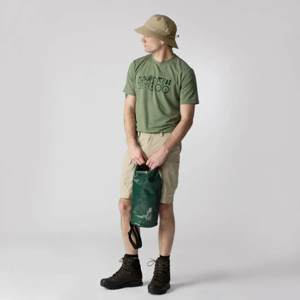 Das Material ist kräftig PU-beschichtet, die Nähte verschweißt. Zusammen mit dem Rollverschluss hast du einen sicheren und trockenen Stauraum!