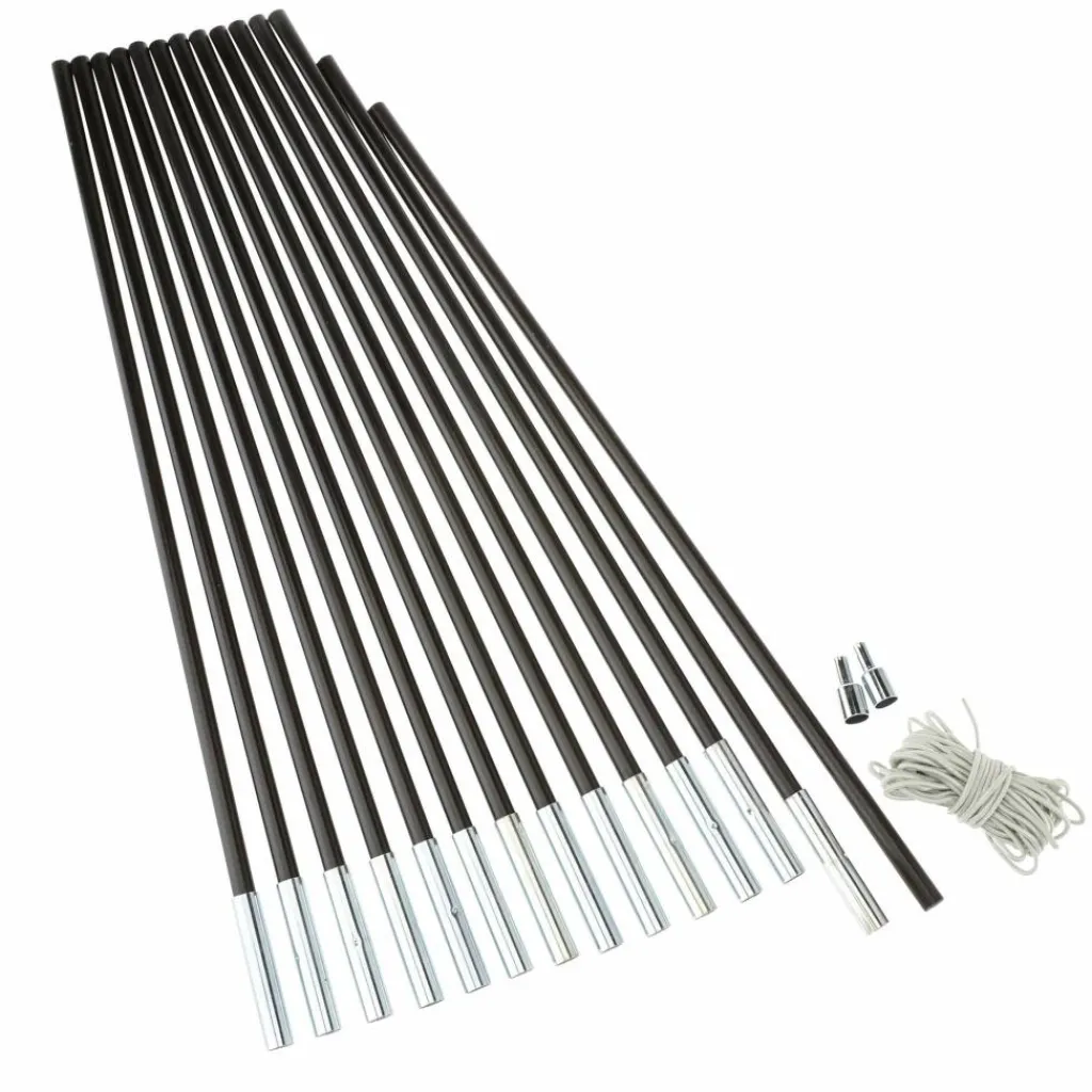 Als Ersatz von Zeltstangen mit 11 mm Durchmesser und maximal 7 Meter Länge. Inkl. Gummizug und Endstücken.
