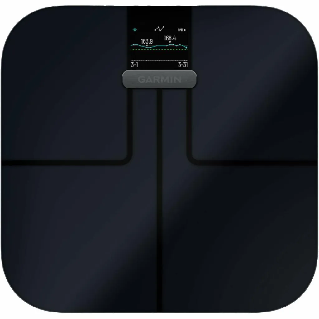 Die Waage verbindet sich über integriertes WLAN mit der Garmin Connect App. Dort werden alle Messwerte zentral gespeichert und grafisch aufbereitet. In der App lassen sich Trends über längere Zeiträume einsehen und die Anzeige der Statistiken individuell anpassen. Mehrere Messungen pro Tag werden ebenfalls dargestellt und ausgewertet.