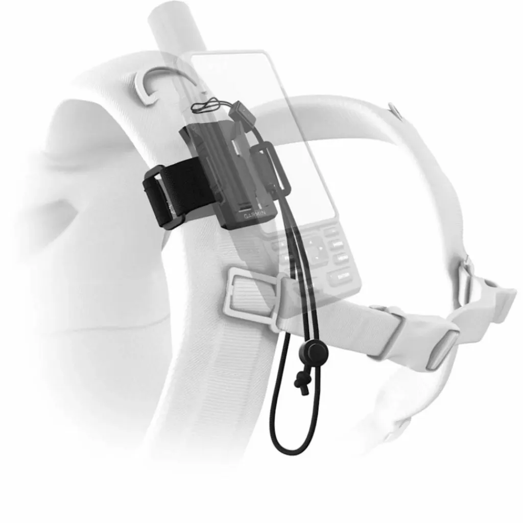 Die Halterung besteht aus robustem Nylon und lässt sich mit Klettverschluss am Schultergurt des Rucksacks fixieren. Sie ist für Gurtbreiten bis 9,5 cm geeignet und mit dem MOLLE-System kompatibel. Dein Gerät befestigst du in der Halterung, sodass du es jederzeit schnell abnehmen kannst. Für zusätzliche Sicherheit sorgt eine verstellbare Trageschlaufe, die am Gerät befestigt und am Rucksack gesichert wird. So bleibt dein GPSMAP auch dann geschützt, wenn es dir aus der Hand rutscht. Die Schlaufe lässt sich flexibel von 5 bis 61 cm anpassen.