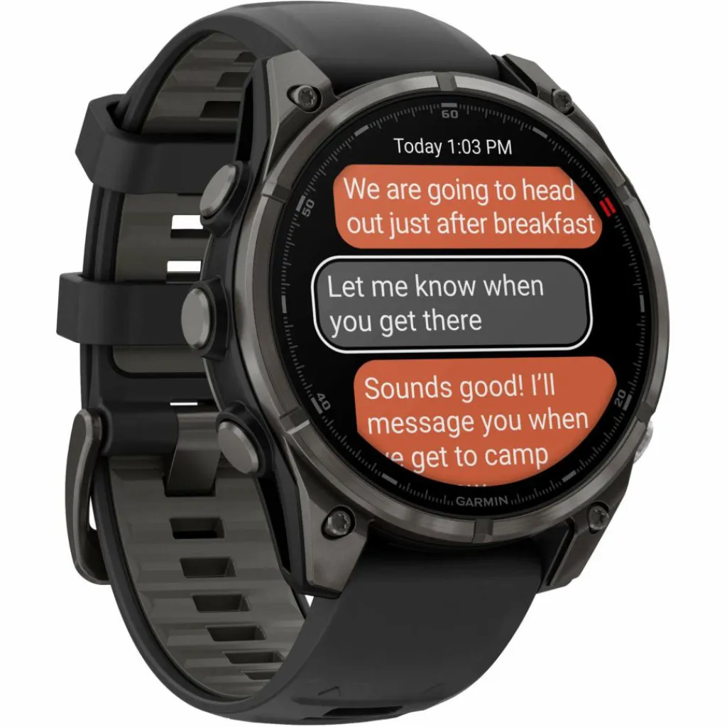 Wenn du in entlegenen Gegenden unterwegs bist, u. a. bis zu 80 Kilometer vor der Küste, kannst du dank der inReach-Technologie der Smartwatch Nachrichten senden und Positions-Check-Ins erhalten, nachdem eine Satellitenverbindung hergestellt wurde. Eine Smartphone-Verbindung benötigst du nicht.