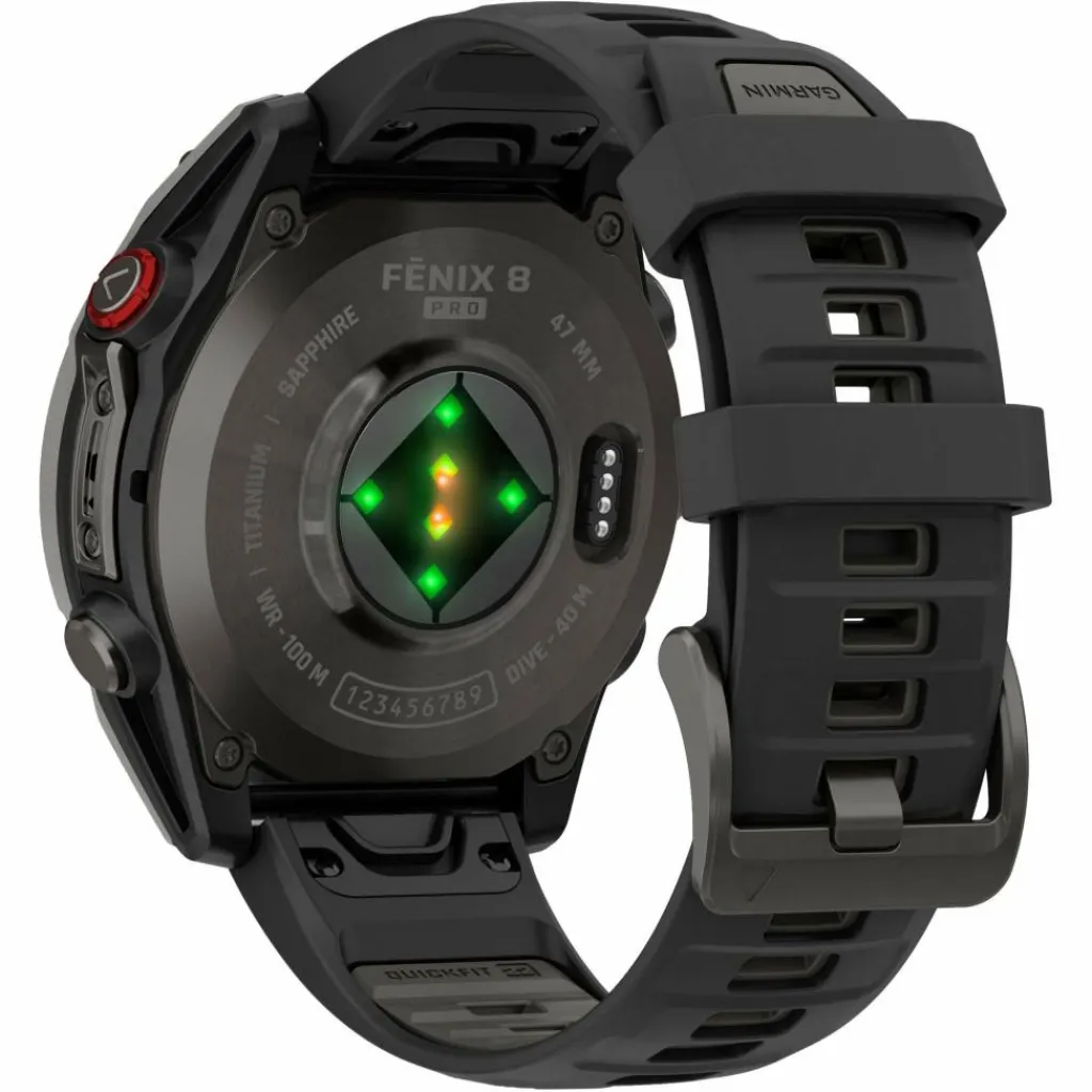 Das hochwertige Design der fēnix 8 macht alles mit. Es ist für das Tauchen geeignet, hat wasserdichte Tasten, einen Sensorschutz aus Metall und ein helles 1,4-Zoll AMOLED Touchdisplay mit kratzfestem Sapphire Glass und einer Titan-Lünette. Die Smartwatch wurde nach US-Militärstandards im Hinblick auf thermische Leistung, Stoßfestigkeit und Wasserdichtigkeit getestet.
