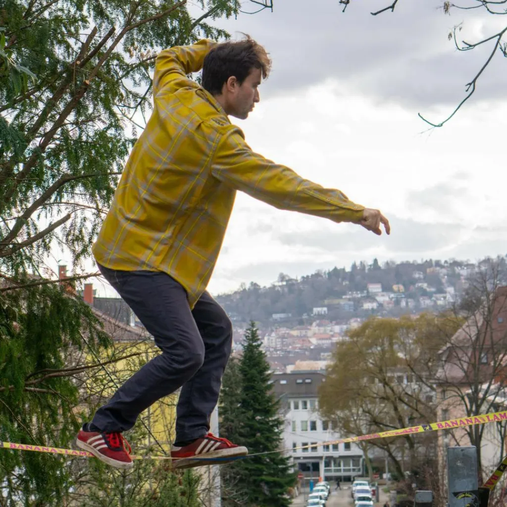Schon bei den ersten Schritten spürst du die gute Dynamik der Slackline. Und durch die hohe Rücksprungkraft des Bandes kannst du dich bei kürzeren Abständen sogar an ambitionierten Sprüngen versuchen.