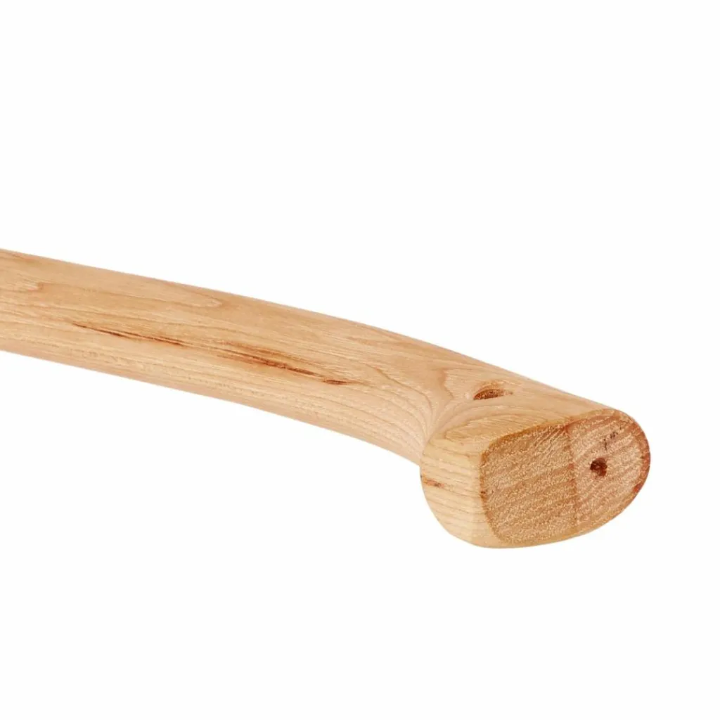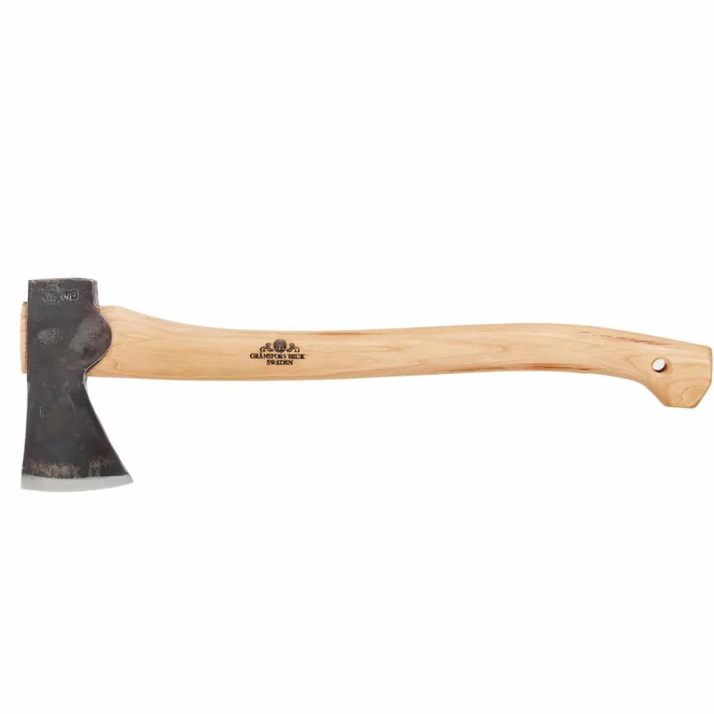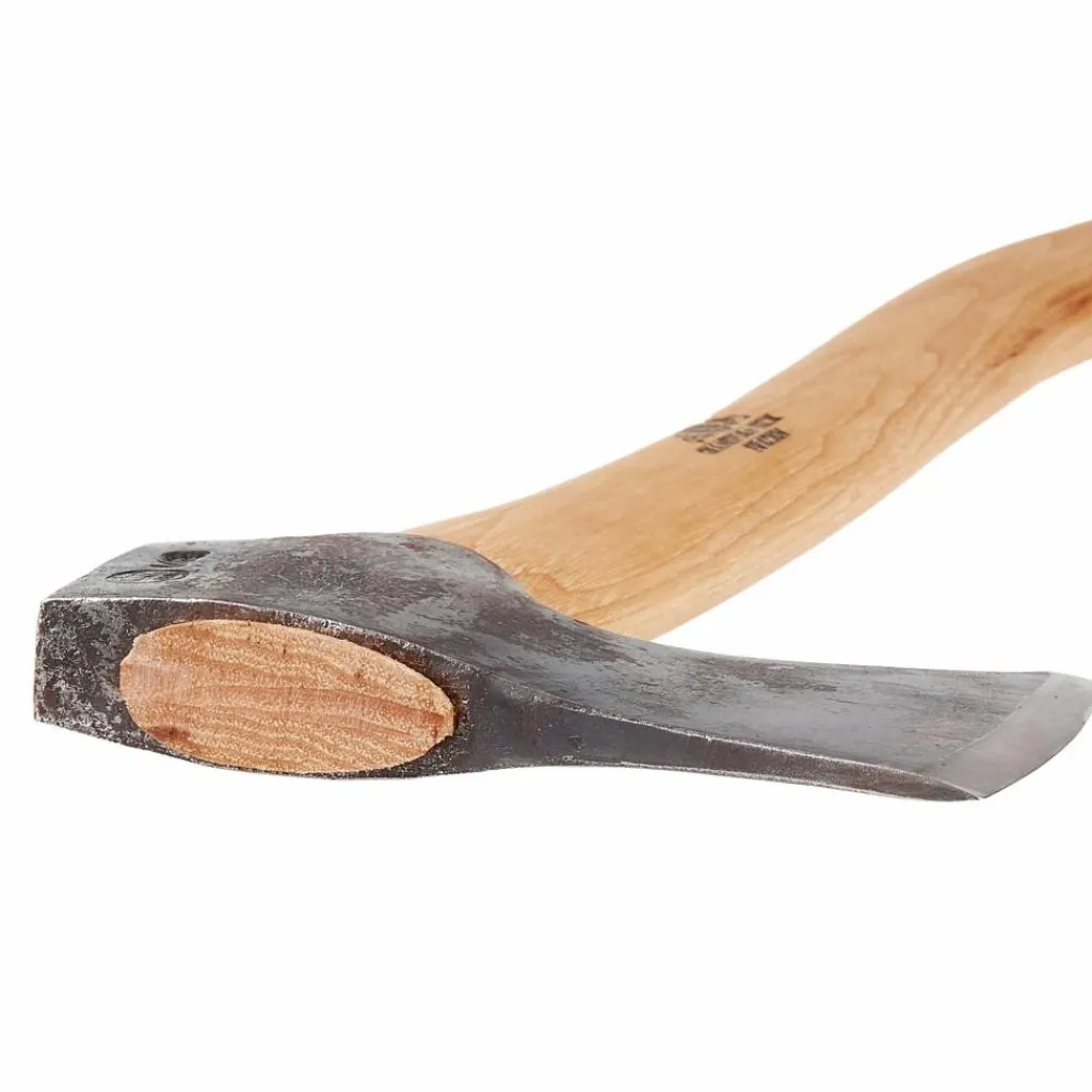 Der Stiel ist ergonomisch geformt und besteht aus Hickory-Holz. Dieses Holz besitzt lange parallele Fasern, eine hohe Festigkeit und ist dennoch flexibel. Bevor der Griff auf der Drehbank in Form gebracht wird, wird das Holz vollständig getrocknet. Das verhindert ein Zusammenziehen nach der Verarbeitung und damit das Lösen des Axtkopfes. Zur Pflege wird der Schaft anschließend mit heißem Leinsamenöl getränkt. Im letzten Schritt wird die Oberfläche mit Bienenwachs behandelt, um ihn wasser- und schmutzabweisend zu machen.