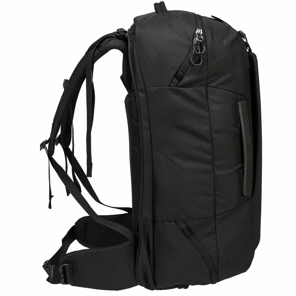 Die Schultergurte und die Hüftflossen können bei Bedarf verstaut werden, wodurch der Border 50+15 am Flughafen problemlos als Gepäck aufgegeben werden kann. Und für eine bequeme Handhabung beim Check-In, im Zug oder Hotel sind zwei Griffe seitlich auf der Front des Kofferrucksacks platziert.