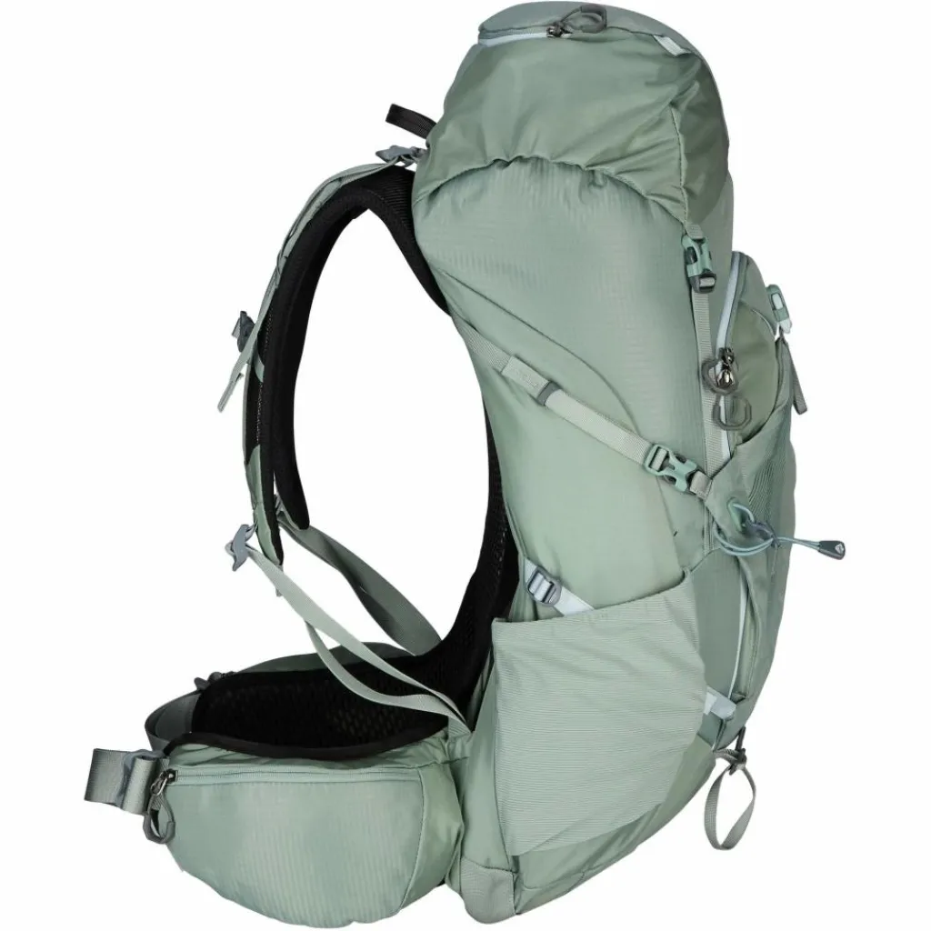 Über die u-förmige Frontöffnung hast du leichten Zugriff auf deine gesamte Ausrüstung. Im Deckel befindet sich eine Regenhülle für Regentage und in den geräumigen Außenfächern können neben Trinkflaschen auch sperrige Teile wie das Zeltgestänge verstaut werden. Besonders praktisch sind die großzügig geschnitten RV-Fächer auf dem Hüftgurt.