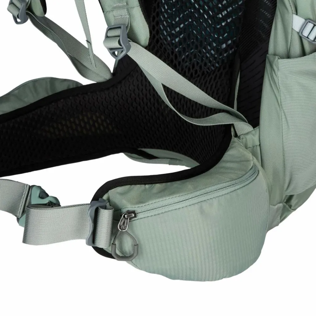Das Tragesystem des Jade 33 ist durchdacht gestaltet und hat eine frauenspezifische Passform. Der luftige Netzrücken aus weichem Airmesh geht nahtlos in den flexiblen Hüftgurt über und überträgt das Gewicht gekonnt auf den Hüftbereich. Dabei ist der Netzrücken im Profil flach gehalten, um einen möglichst körpernahen Sitz zu kreieren. Der Tourenrucksack ist in zwei verschiedenen Rückenlängen erhältlich, die zusätzlich stufenlos per Klett an deinen Rücken angepasst werden können.
