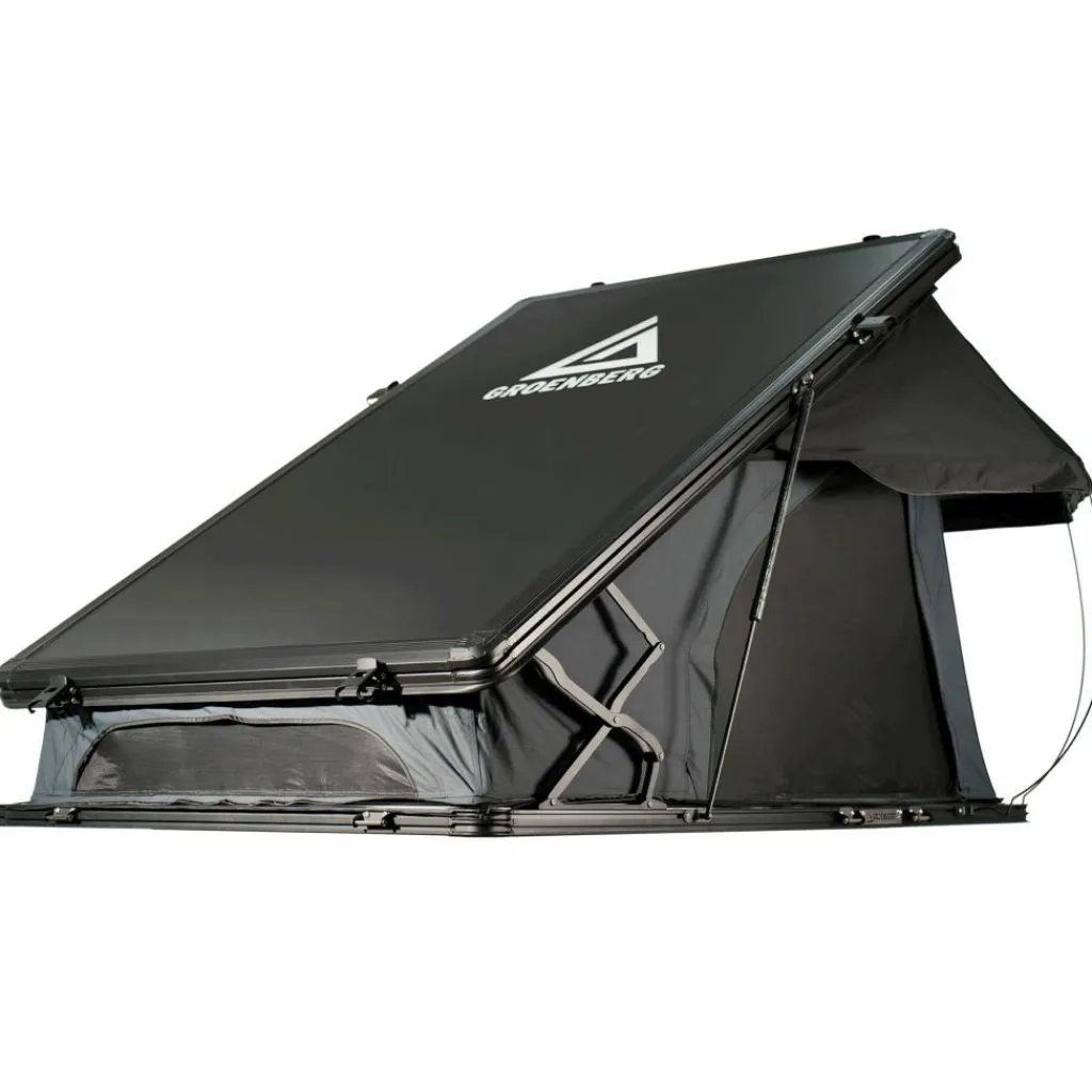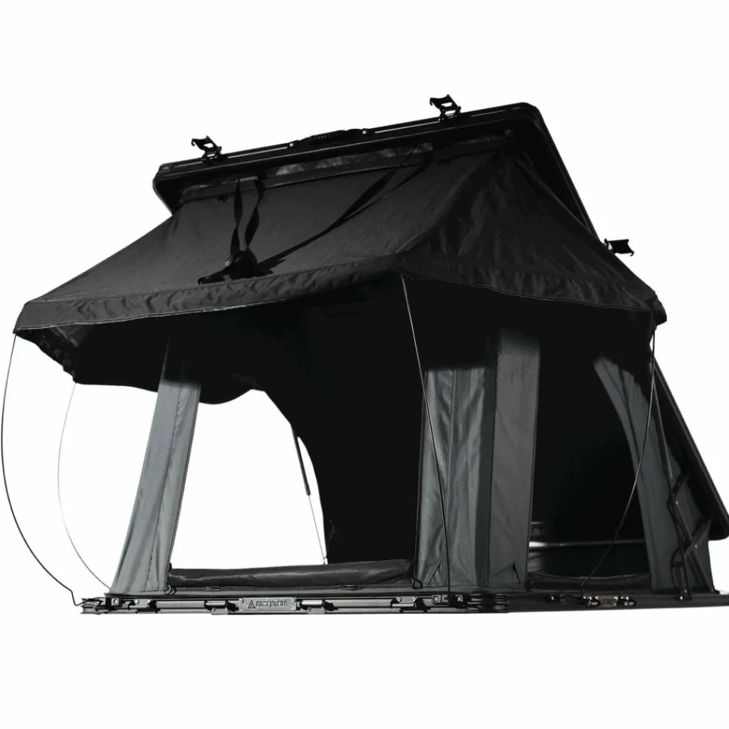 Die aerodynamische Aluminium-Hartschale mit nur 12 cm Höhe im geschlossenen Zustand reduziert den Luftwiderstand und spart Kraftstoff bei längeren Fahrten. Mit dem halbautomatischen öffnungsmechanismus lässt sich das Zelt mithilfe von Gasdruckfedern in Sekundenschnelle auf- und abbauen – auch alleine. Die großzügige Liegefläche mit Memory Foam Matratze, leichter Deckenerhöhung und belüftender 3D Airmesh Matte sorgt für erholsamen Schlaf. Fenster mit Insektenschutz ermöglichen gute Belüftung und Ausblick, während die LED-Beleuchtung mit USB-Anschluss Licht ins Zelt bringt.