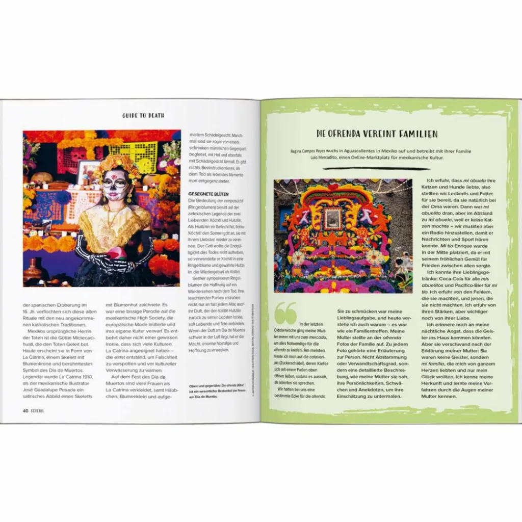 Memento Mori – aber mit Style. Wie gehen andere Kulturen mit Tod, Erinnerung, Begräbnissen und dem Glauben an ein Leben nach dem Tod um? Erfahre es in diesem stylischen Band von Lonely Planet. Vom berühmten Día de los Muertos in Mexiko über feucht-fröhliche Irish Wakes bis hin zu Menschen, die ihre Asche ins All schießen lassen – auch der Tod bietet allerlei Kurioses auf der ganzen Welt. Mit interessanten Themenseiten, spannenden Texten und authentischen Fotos nimmt Lonely Planet mit auf eine Reise der anderen Art – und zeigt, dass selbst das Lebensende nicht immer grau-trüb daherkommen muss.