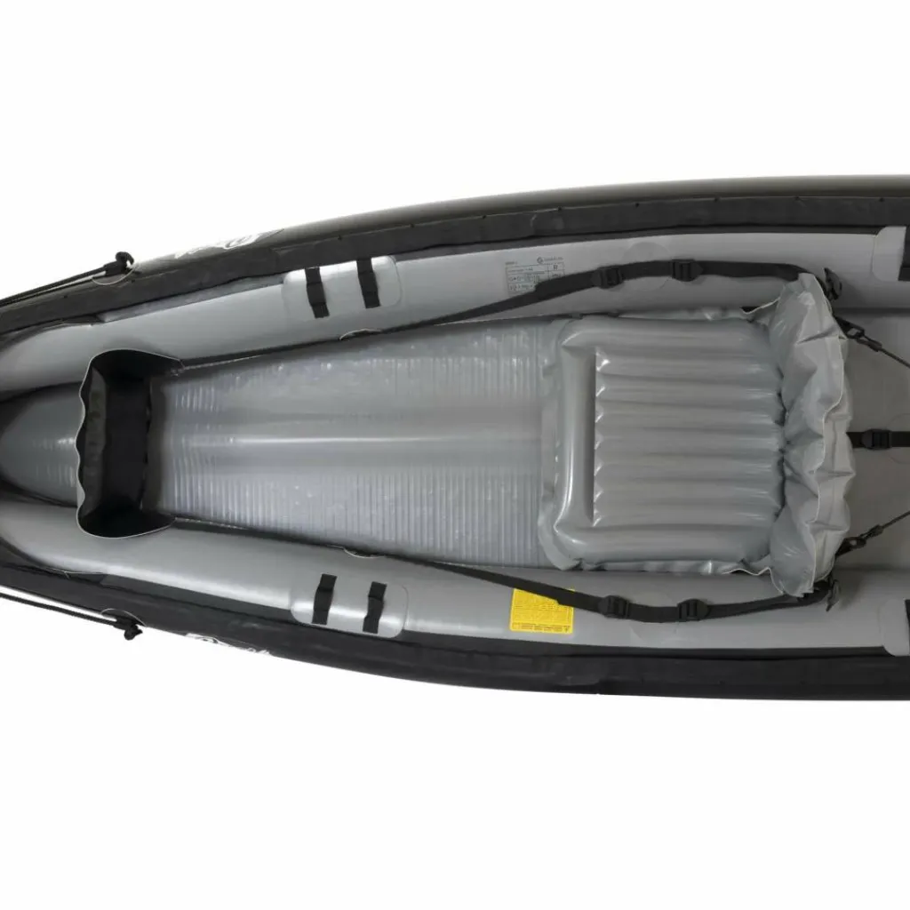 Durch die ausgeprägte Bugform und die hohe Steifigkeit der Bootskonstruktion gleitet das Schlauchkajak ausgezeichnet durchs Wasser. Mit seiner leichten Manövrierbarkeit und den flinken Laufeigenschaften wird jeder Paddeltrip zum Vergnügen! Ein bequemer aufblasbarer Sitz und die anpassbaren Fußstützen bieten dir auch auf längeren Touren einen sehr guten Sitzkomfort. Die Beinfreiheit ist relativ großzügig bemessen, so dass auch große Personen ausreichend Platz finden.