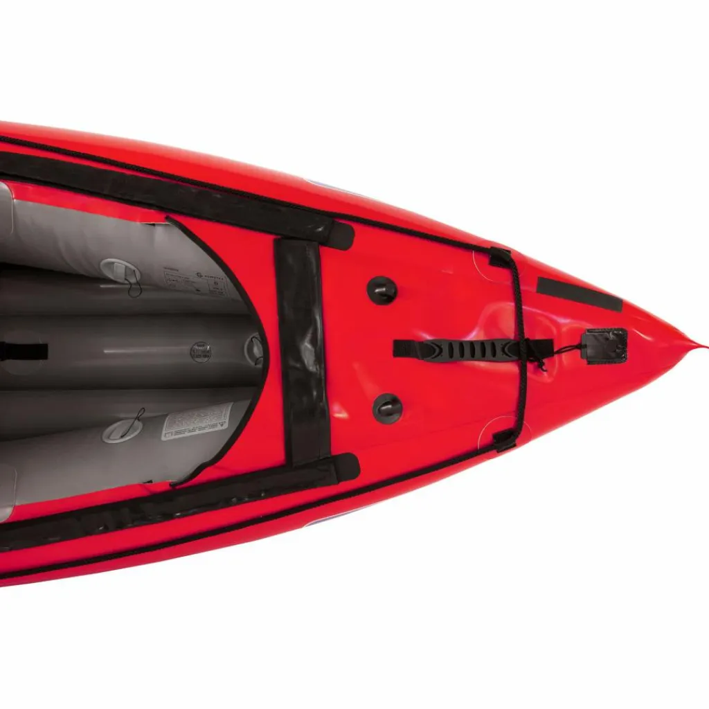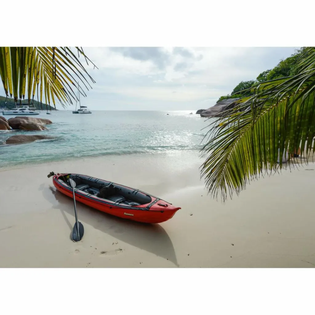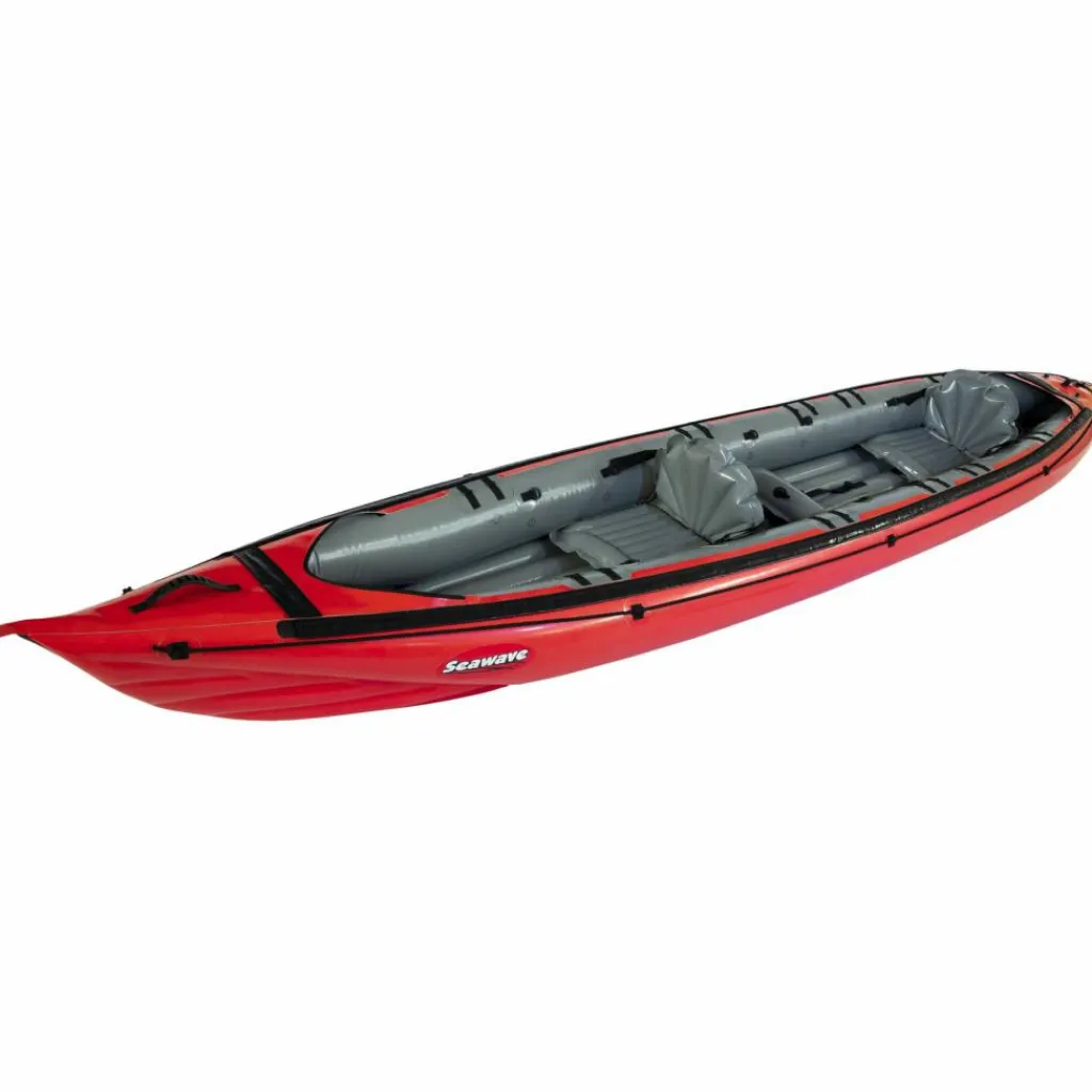 Durch seine schmale, lange Bauform, kombiniert mit einem stark konturierten Vordersteven, hat das Kajak einen sehr guten Geradeauslauf für ein Schlauchboot. Das Seawave ist mit Befestigungspunkten für eine Spritzdecke ausgestattet, die optional als Zubehör erhältlich ist.