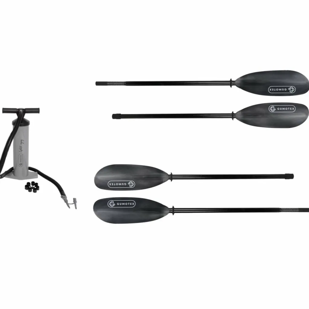 Preiswertes Zubehör-Set für dein Gumotex Schlauchboot. Bestehend aus der GTX Doppelhubpumpe inklusive Push-Push Ventiladapter und zwei teleskopierbaren Doppelpaddeln in 230-240 cm Länge.