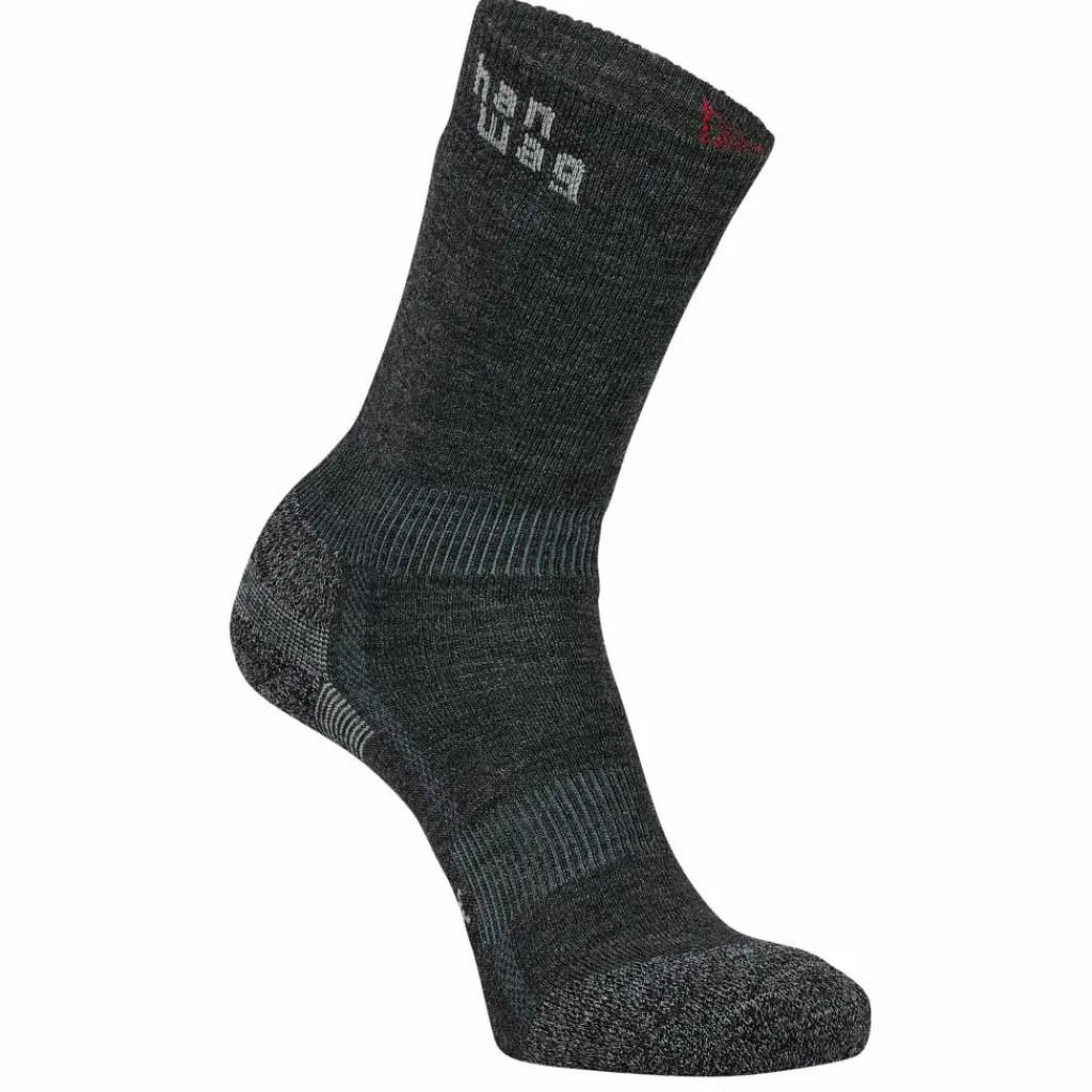 Ist die „Socke Alpin“ auf das alpine Schuhwerk von Hanwag. Außen zeigt sich das Material fest und glatt; innen kommen luftige Frotteeschlingen an den Fuß. An Zehen und Ferse ist das Material leicht verstärkt, seitlich des Spanns sorgen Luftkanäle für ein ausgeglichenes Fußklima. Elastische Bündchen im Mittelfußbereich und über dem Knöchel sorgen für besonders guten Sitz. Der Schaft schließt mit einem breiten, dehnbaren Rippenstrick-Bündchen ab.