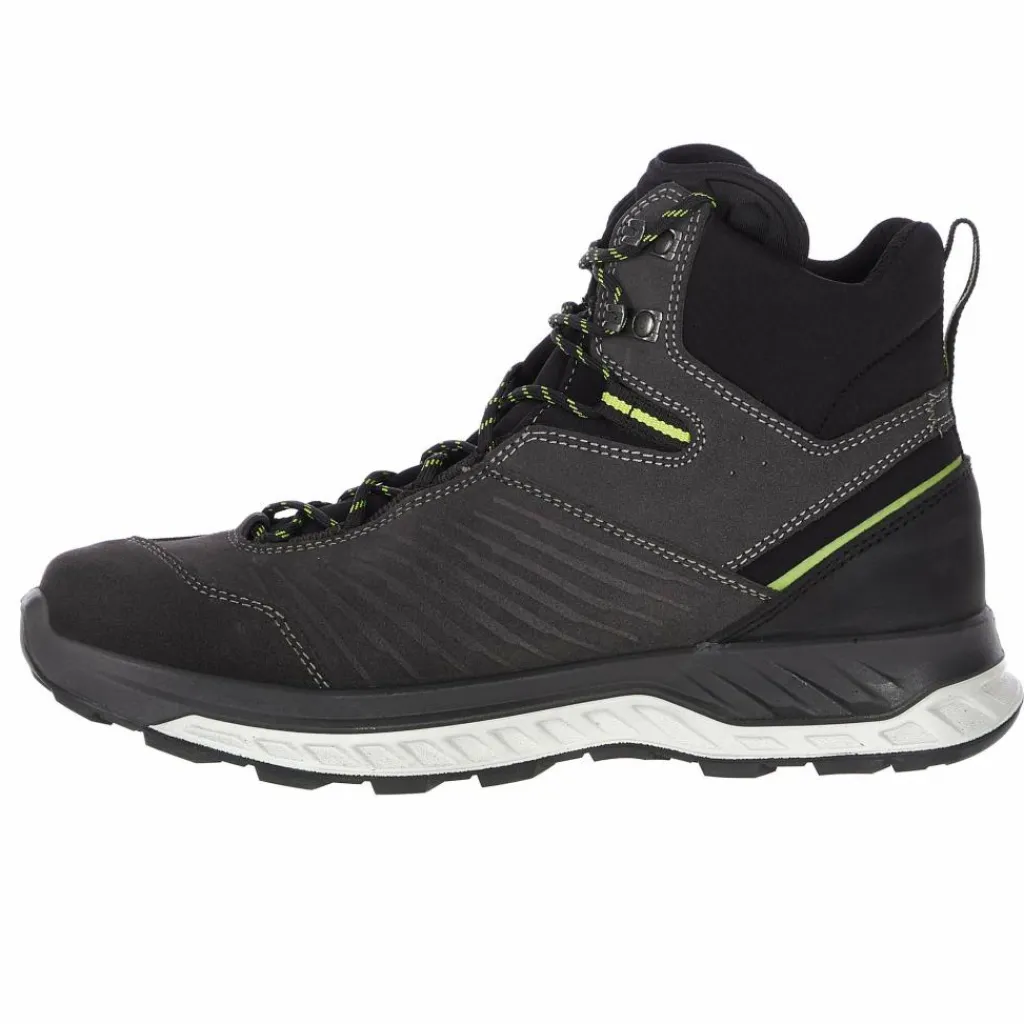 Das wirkliche Herzstück des hochfunktionalen Stiefels erkennt man aber erst auf den zweiten Blick. Gemeint ist die Sohlenkonstruktion, die es wirklich in sich hat. Um die Abrollbewegung deines Fußes optimal unterstützen zu können, wird auf verschieden harte Dämpfungskeile zurückgegriffen. Der dunklere Teil ist weicher und umschließt deinen Fuß wie eine Art Schale für maximalen Komfort. Der hellere Teil ist härter und bietet durch seinen höhren Sohlenrand aus stabilisierendem PU zusätzlichen Halt. Dadurch wird der Auftritt gedämpft und die Abrollbewegung optimal unterstützt.