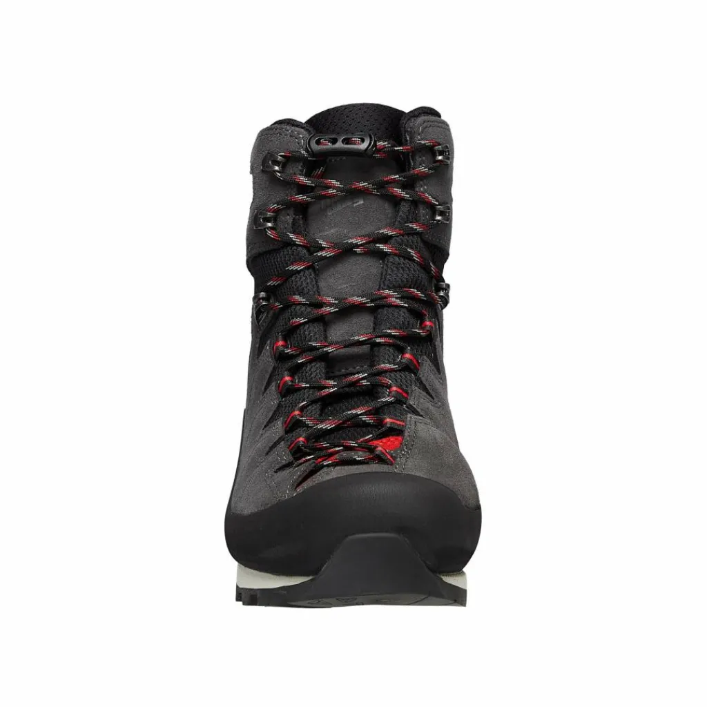 Die robuste Konstruktion mit TPU-Verstärkungen im Fersenbereich sowie einer Zehenschutzkappe und einem umlaufenden Geröllschutzrand aus Gummi schützt zuverlässig vor Stößen und Abrieb. Zudem bietet der Schuh die Option, Steigeisen zu nutzen, da er an der Ferse eine Steigeisenauflage vorweist.