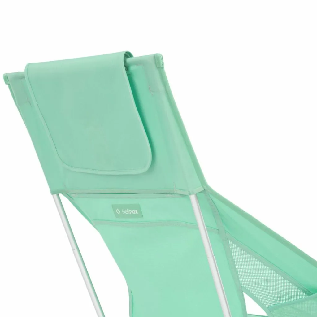 Dank des faltbaren Gestells verfügt der Sunset Chair (Re) über ein kompaktes Packmaß. Trotzdem sitzt es sich unglaublich gemütlich. Und auch dein Kopf ist prima gebettet. Schlau gemacht: Der Packsack des Stuhls kann mit Bekleidung gestopft und dann an der Rückenlehne fixiert werden; so hast du ein gemütliches Kopfkissen am Sunset Chair. Unter das Flap an der Lehne kannst du auch eine etwas voluminösere Jacke oder ein Kissen platzieren, um deinem Kopf eine angenehme Unterlage zu schaffen.