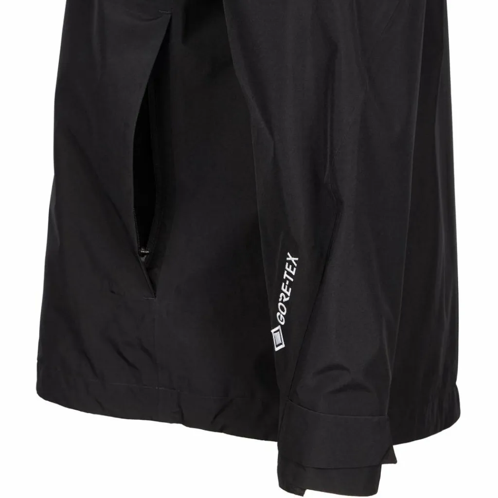 Die 2-lagige Regenjacke verfügt über ein strapazierfähiges Außenmaterial und ein weiches, feuchtigkeitsleitendes Netz- und Taftfutter auf der Innenseite. Dazwischen sorgt die leistungsstarke Gore-Tex-Membran für zuverlässigen Schutz vor Regen und kaltem Wind. Gleichzeitig lässt sie Wasserdampf, der sich im Inneren der Jacke ansammelt, schnell nach außen entweichen. So trägt sich die Regenjacke auch dann sehr angenehm, wenn der Trail steil bergauf geht.
