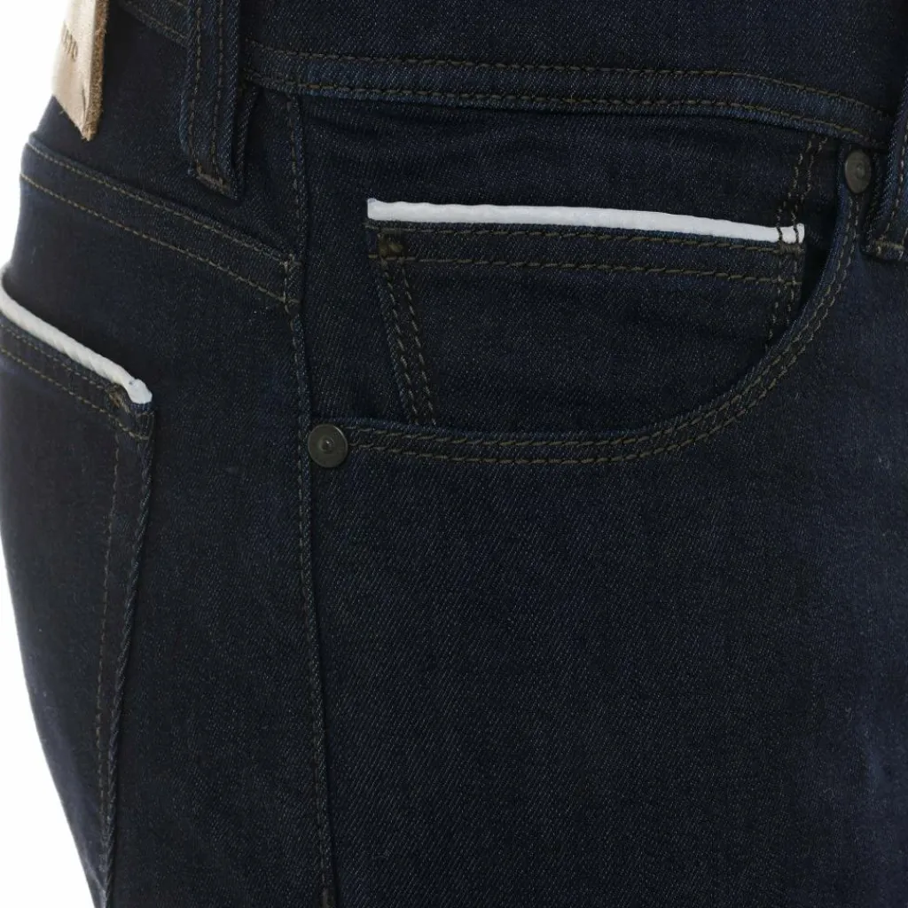 Diese Hose hat so manch schöne Überraschung zu bieten: Das Mischgewebe ist dehnbar und komfortabel, außerdem weist es dank ecorepel Wasser und wässrigen Schmutz ab (siehe auch unten). Auch der Schnitt ist radspezifisch: Der Bund ist hinten leicht höher geschnitten; die Gesäßtaschen sind so angeordnet, dass sie auf dem Sattel nicht stören. Außerdem hat die Bike-B – Eco Repel Denim reflektierende Elemente an den richtigen (und gleichzeitig unauffälligen) Stellen.