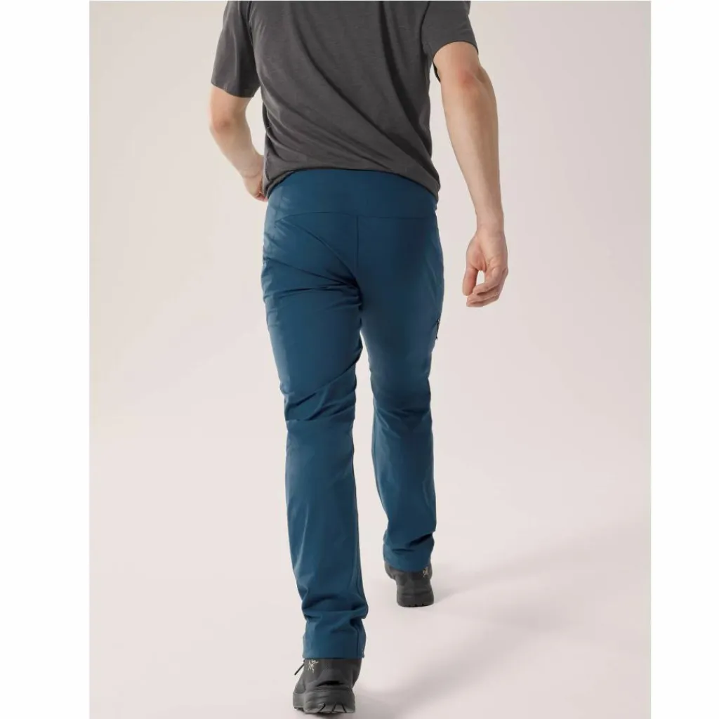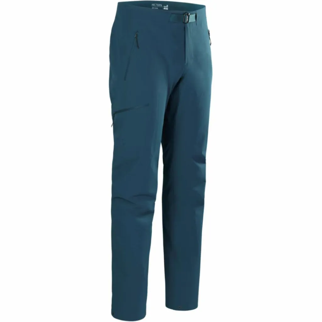 Eine dezente, aufgeräumte Ausstattung, die aufs Wesentliche reduziert ist, unterstützt das geringe Gewicht der Hose und sorgt für Komfort. So macht sich der integrierte Gürtel selbst unter einem Klettergurt oder Rucksackhüftgurt nicht bemerkbar. Die Beinabschlüsse lassen sich dank Kordelzug zusammenziehen, sodass du den nächsten Tritt immer im Blick hast. Drei Reißverschlusstaschen bieten sicheren Stauraum für Schlüssel, Riegel und Co.