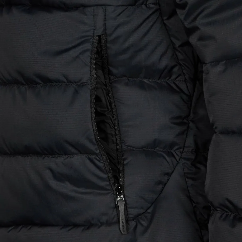 Eine weitere Besonderheit: Mit dem Arato 20 Bio Liner Innenmaterial zeigt Arc’teryx Fortschrittlichkeit in puncto Ressourcenschonung: Das Gewebe ist zu 60% biobasiert, denn hier wurde Rizinusöl statt Mineralöl verwendet. Auch die Coreloft Fütterung ist zu 80% recycelt, die Daune stammt dank RDS Zertifikat aus nachverfolgbarer, ethischer Herkunft.