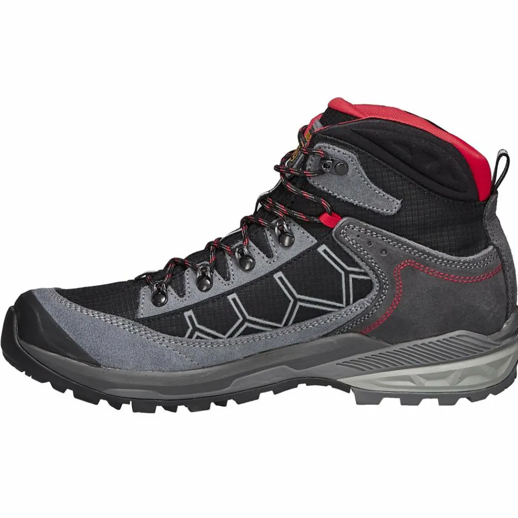 Die Stabilität des Falcon Evo GV MM geht allerdings nicht auf Kosten der natürlichen Abrollbewegung: Dafür sorgt der spezielle Leisten dieses Schuhs. Der mittelhohe, weich gepolsterte Schaft sowie die weich gepolsterte Zunge umschließen schützend den Knöchel. Der Schaft gewährt dir durch den Schnitt viel Bewegungsfreiheit.