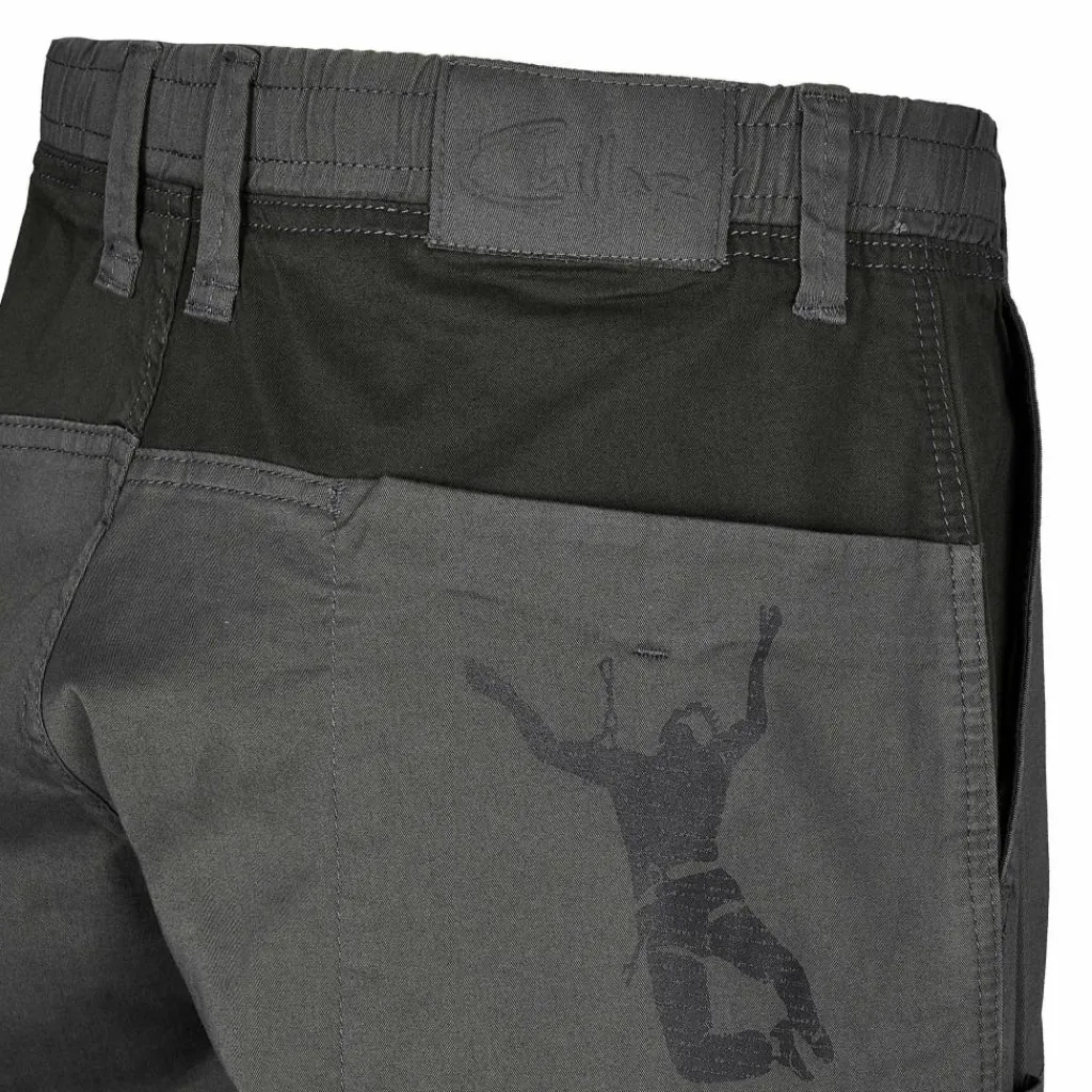 Der elastische Bund lässt sich durch den innenliegendem Kordelzug perfekt mit dem Klettergurt kombinieren. In dem seitlichen Beinfach kannst du deine Boulderbürste unterbringen.