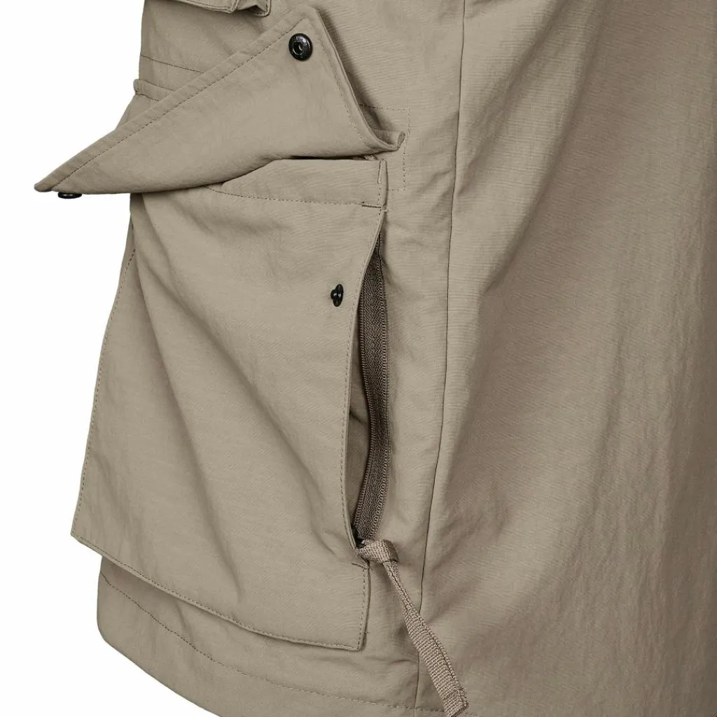 Ausgestattet mit nicht weniger als 12 Taschen bieten sich dir viele Möglichkeiten, dein Hab und Gut zu verstauen. Unter anderem befindet sich im Inneren der Weste eine Tasche, welche sich mit einem kleinen Karabiner verschließen lässt. In ihr versteckt sich eine RFID-Tasche, in der du deine Kreditkarten unterbringen kannst. Am unteren Rücken ist die Weste mit einer RV-Tasche ausgestattet.