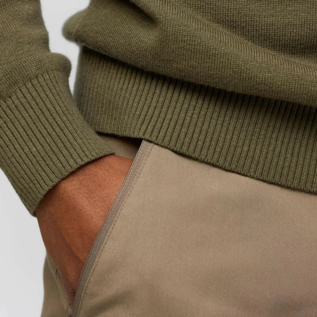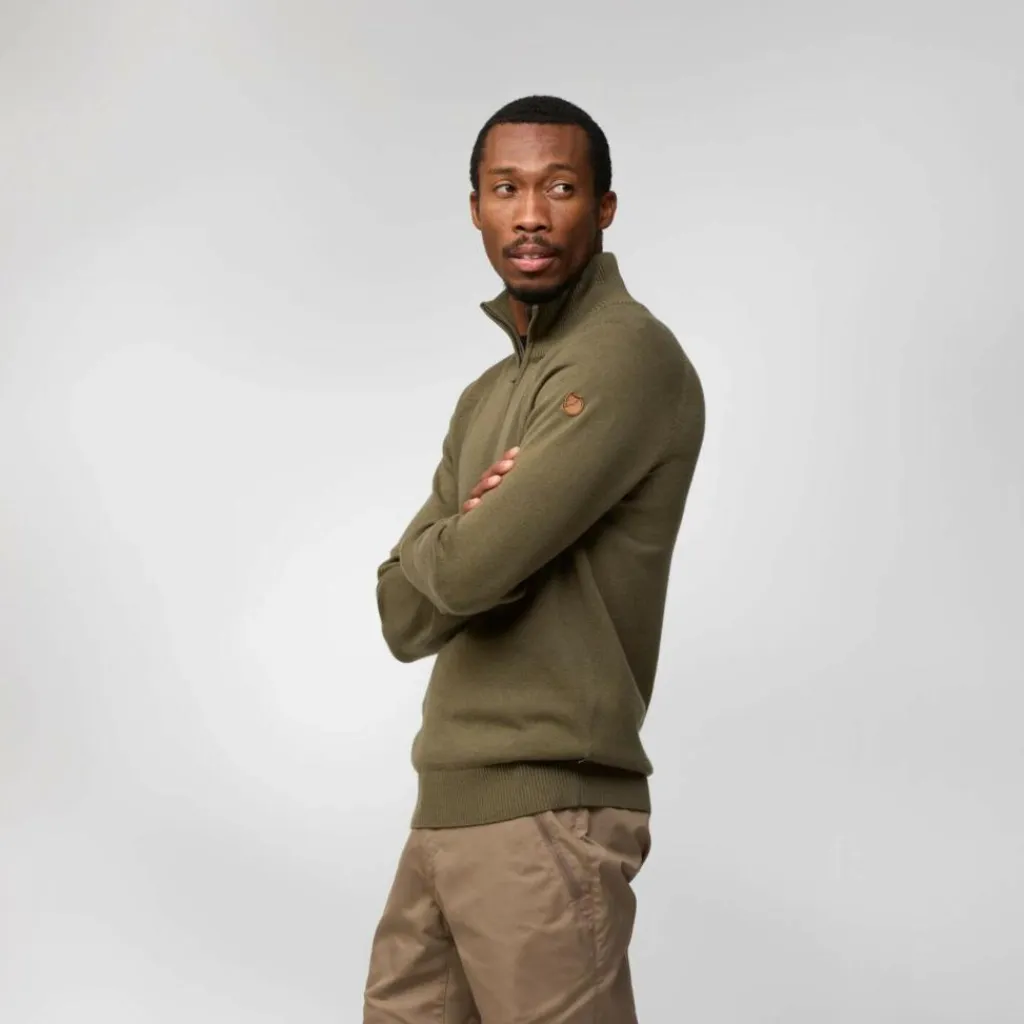 Wärmender Midlayer für kühles Wetter: Der Övik Lite Half Zip wärmt dich, falls nötig, dank hohem RV-Kragen bis hinauf zum Kinn. Der weiche Mix besteht aus Merinowolle und Bio-Baumwolle.