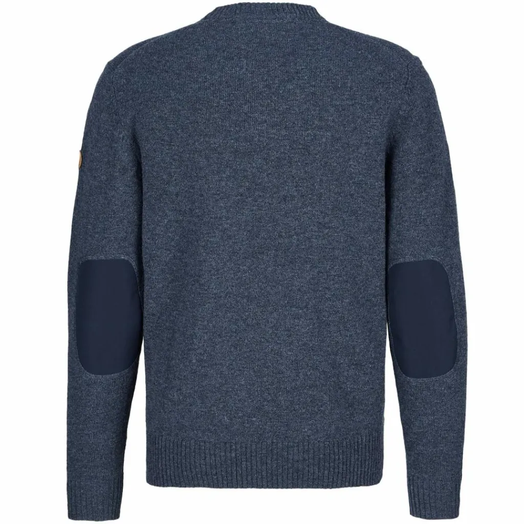 Die Bereiche an den Ellenbogen sind mit G-1000 Eco verstärkt. Sie schützen vor Abrieb und unterstreichen die rustikale Optik des Pullovers. Durch die Rippstrick-Bündchen am Halsausschnitt, an den Ärmeln und am Saum sitzt der Pullover passgenau und sehr bequem. Auch der gerade, nicht einengende Schnitt trägt zum hohen Komfort des Pullovers bei.