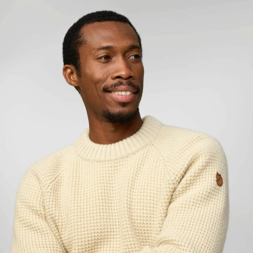 Ärmelbündchen, Kragen und unterer Saum stehen im Kontrast zur Waffelstruktur an Körper und Ärmeln: Diese sind in Rippstrick-Optik gehalten und machen aus dem Övik Waffel Knit M einen Pullover, den man jeden Tag anziehen könnte. Die Wolle spielt hier natürlich auch ihre anderen Fähigkeiten aus: Neben dem ausgezeichneten Wärmevermögen ist Wolle geruchshemmend und feuchtigkeitsleitend. Außerdem kann diese Naturfaser auch dann noch Wärme spenden, wenn sie feucht geworden ist. Und das Klima in einem solchen Wollpullover ist beinahe unvergleichbar: auch wenn du dich nach der Kälte draußen wieder in einem warmen Raum aufhältst, sorgt die Faser für ein angenehmes Tragegefühl – ganz ohne zu überhitzen. Typisch Wolle!