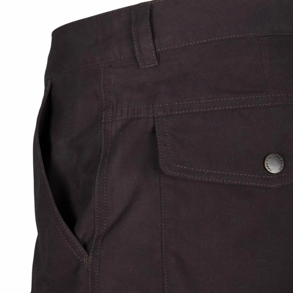 Das langlebige Rugged-Material wurde leicht aufgeraut, wodurch die Hose trotz ihrer Strapazierfähigkeit und des recht festen Griffs eine etwas weichere Haptik erhält. Daher ist sie besonders angenehm zu tragen. Das Mischgewebe aus Polyester und Baumwolle ist zudem wind- und leicht wasserabweisend und durch seine enge Webart annähernd mückendicht. Perfekt an entspannten Abenden am Lagerfeuer.