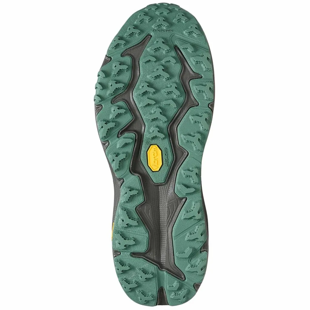 Ein weiteres Kernstück ist die Laufsohle. Hier kommt eine Vibram Sohle mit Megagrip Gummimischung unter den Fuß. Die selbst mit wirklich schwierigen Verhältnissen wie beispielsweise losem, nassem Geröll zurechtkommt. Die Stollen mit einer Profiltiefe von 5 mm sind diesbezüglich auch ein echtes Statement! Der Schuh verfügt außerdem über eine verstärkte Zehenschutzkappe, die vor Schäden, aber auch vor Verletzungen schützt.