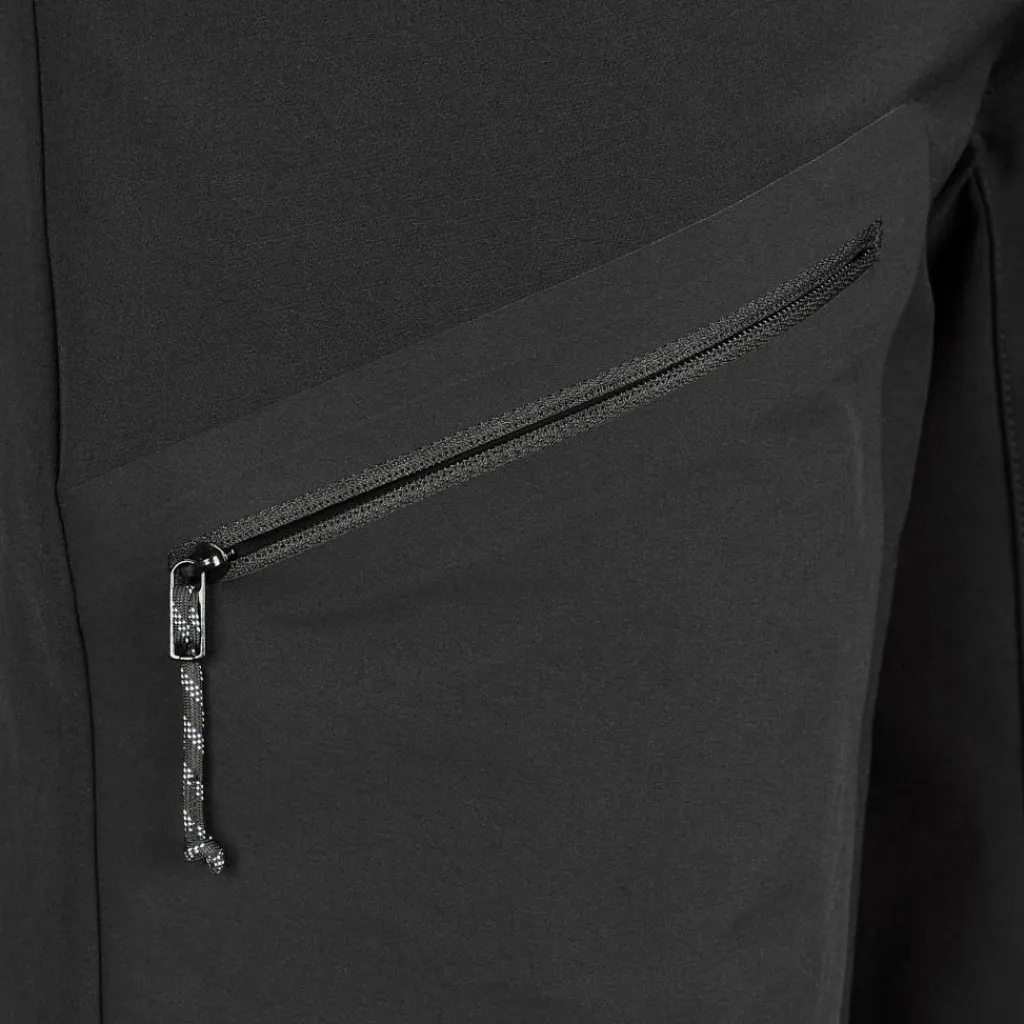 Dank ihres Softshell-Doppelgewebes mit hohem Polyamid-Anteil ist die Shorts robust genug für den Einsatz am Fels. Entstehende Feuchtigkeit leitet das Material schnell nach außen hin ab. Durch ihre hohe Elastizität macht die Shorts auch herausfordernde Kletterbewegungen problemlos mit. Wird das Wetter etwas ungemütlicher, profitierst du außerdem von den wind- und wasserabweisenden Eigenschaften des Materials.