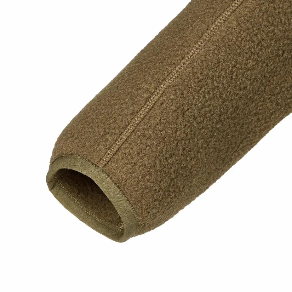 Das kuschelig weiche Fleece-Material besteht aus recyceltem Polyester. Ein Gewinn für wertvolle Ressourcen. Das Gewebe bietet dir die nötige Wärme in der Übergangszeit und überzeugt mit schnellem Feuchtigkeitstransport. Die beiden Einschubtaschen sind ideal zum Aufwärmen deiner Hände unterwegs. Und auch der hohe Stehkragen reiht sich in den angenehmen Wärmekomfort mit ein. Brauchst du hingegen einmal ein wenig Abkühlung, ist dies ganz nach Bedarf über den halblangen Front-RV möglich.