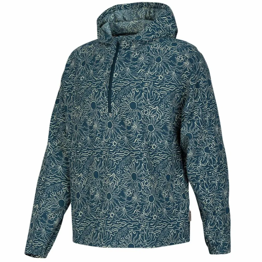 Die bequeme Kapuze sowie der Bund sind mit einem elastischen Saum versehen, sodass sie gut sitzen. Im Saum ist zudem ein Schnürzug versteckt, wodurch sich die Weite zusätzlich regulieren lässt. Durch den viertellangen Front-RV wird das An- und Ausziehen erleichtert und du kannst zudem für etwas Belüftung sorgen.